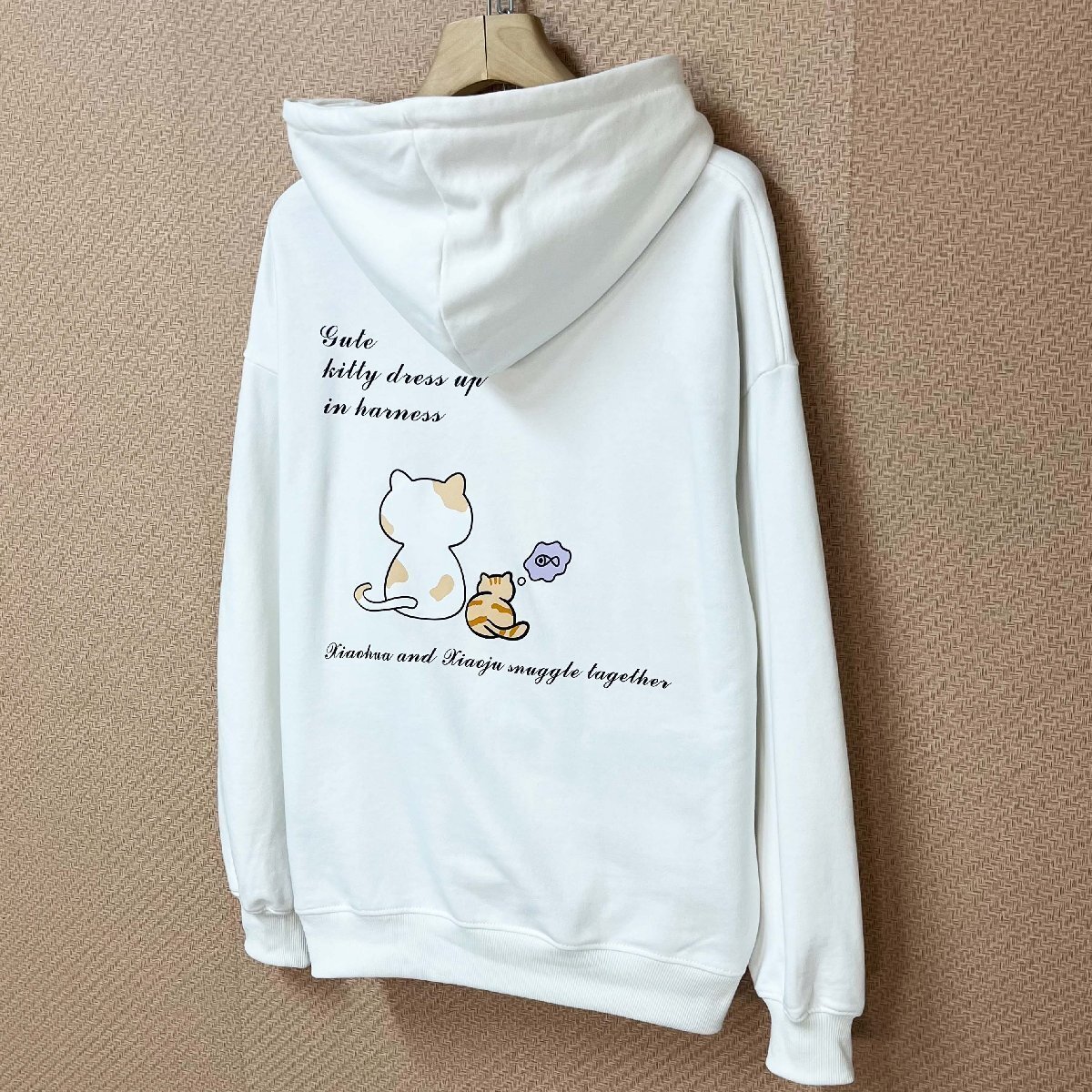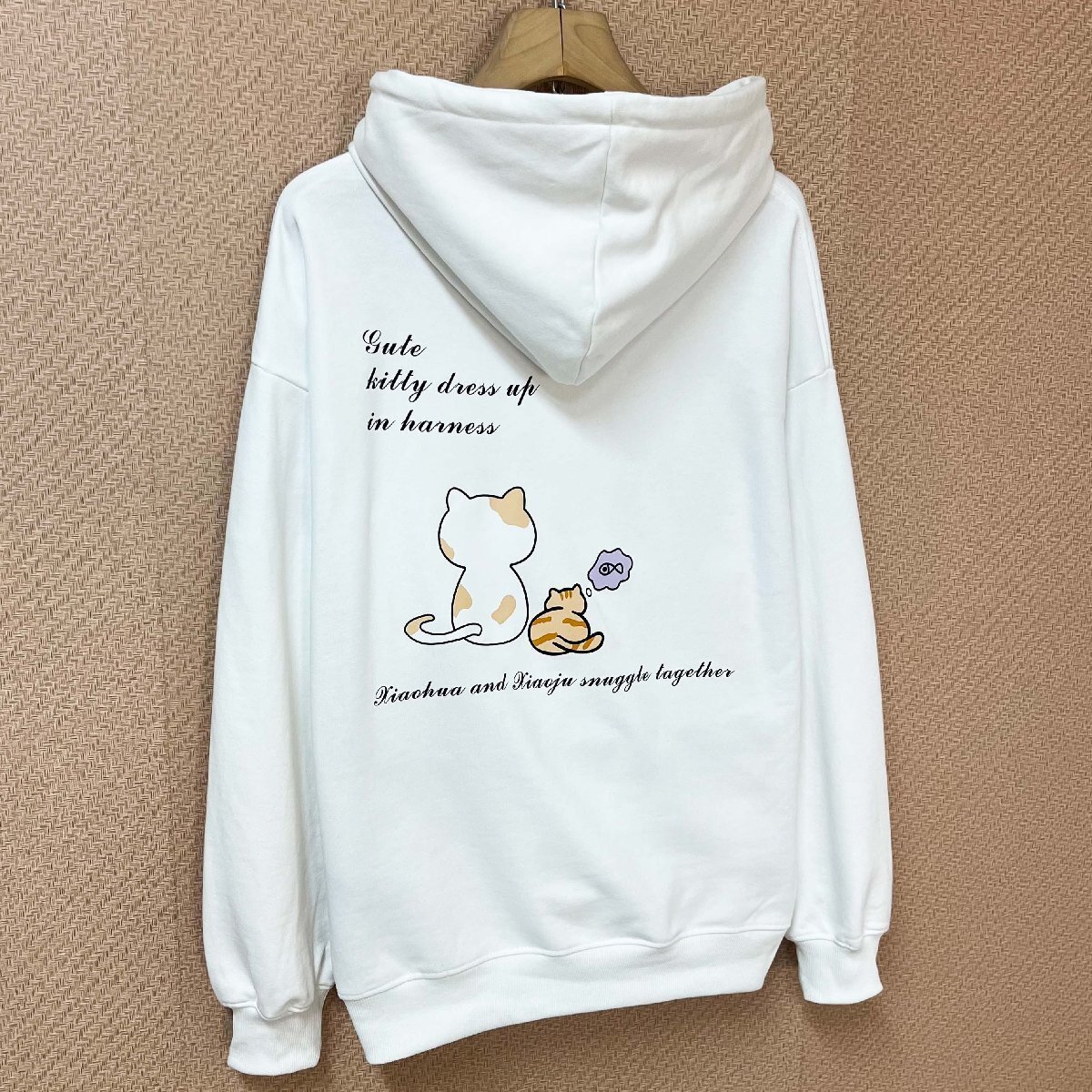 人気ヨーロッパ製※定価4万◆ブルガリア発※RISELIN パーカー 綿100% 保温 猫柄 遊び心 可愛い カットソー トップス 男女兼用 秋冬 2XL/52