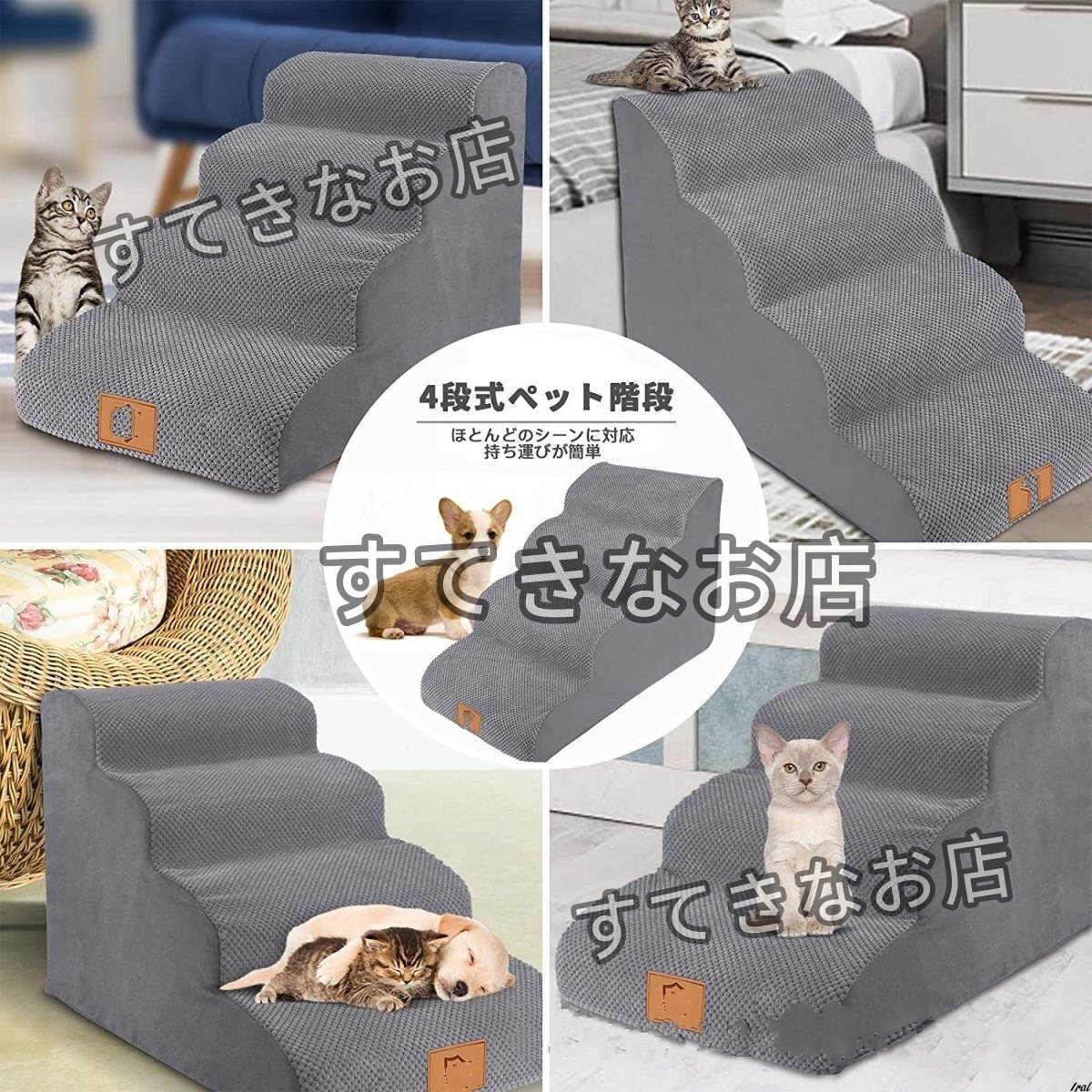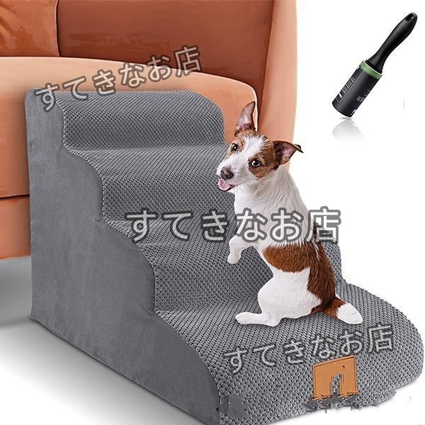 ドッグステップ ペット用 ステップ 4段 踏み台 高密度フォームドッグラダー 快適 耐水性 滑り止め 洗える表面布カバー ペットのはしご