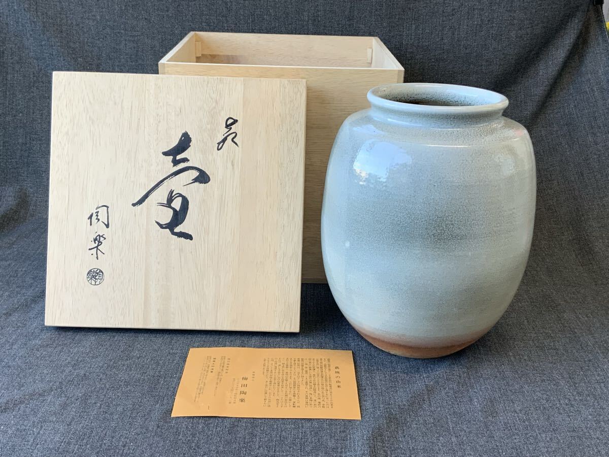 R13o1 梅田陶楽 萩焼 壺 共箱 未使用 花器 花入 幅25 高さ31 品格ある作品 和モダンインテリア