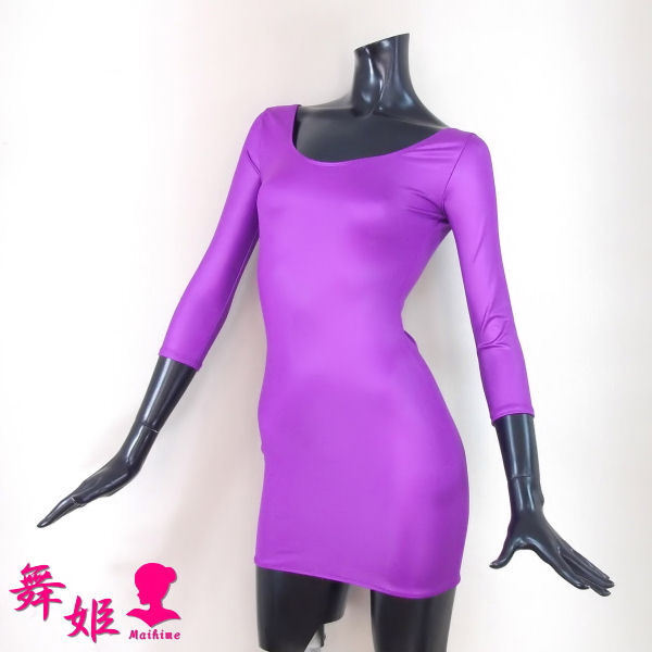 商品名:(155XLa-T61) 七分袖ミニ丈ワンピース (艶光沢パープル) | ||||||||||||||||||||||||||||||||||||||||||||||||||