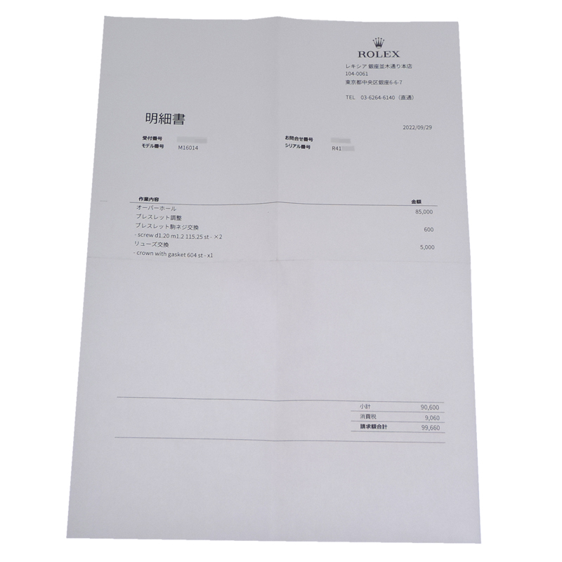 | 付属品 | ギャランティ、外箱、内箱 、修理明細書 |