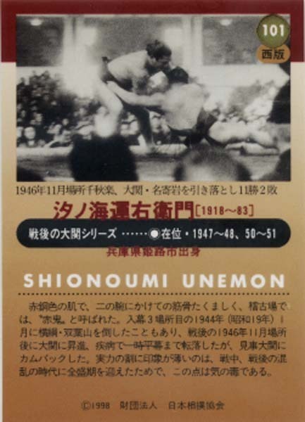 ★トレカ★BBM98大相撲西版【#101 汐ノ海運右衛門】★