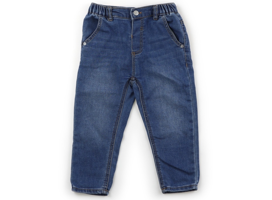 実際のサイズ表記は98cm。前スナップボタン。ウエストはゴム入り。素材タグが切られています。色褪せと洗いざらし感がありますが、まだまだ普段着として活躍してくれそうです。