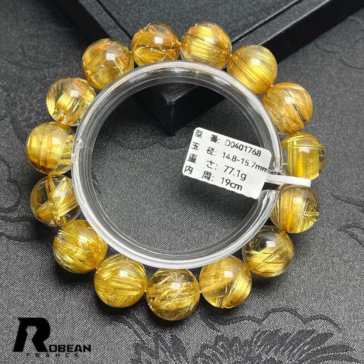 上品 EU製 定価697万円★ROBEAN・極!極満針ルチルクォーツ★猫目 ブレスレット パワーストーン 天然石 金運 お守り 14.8-15.7mm D0401768