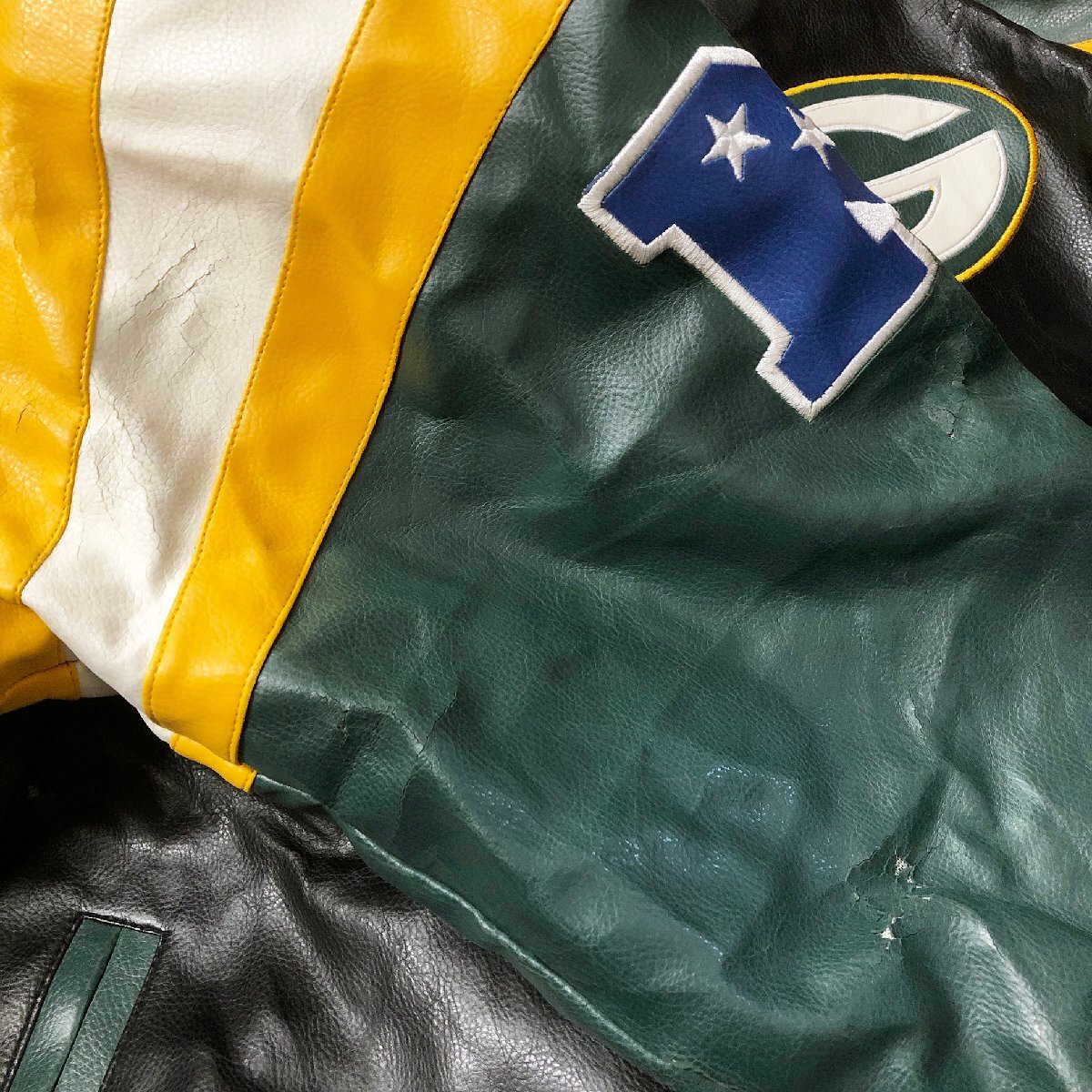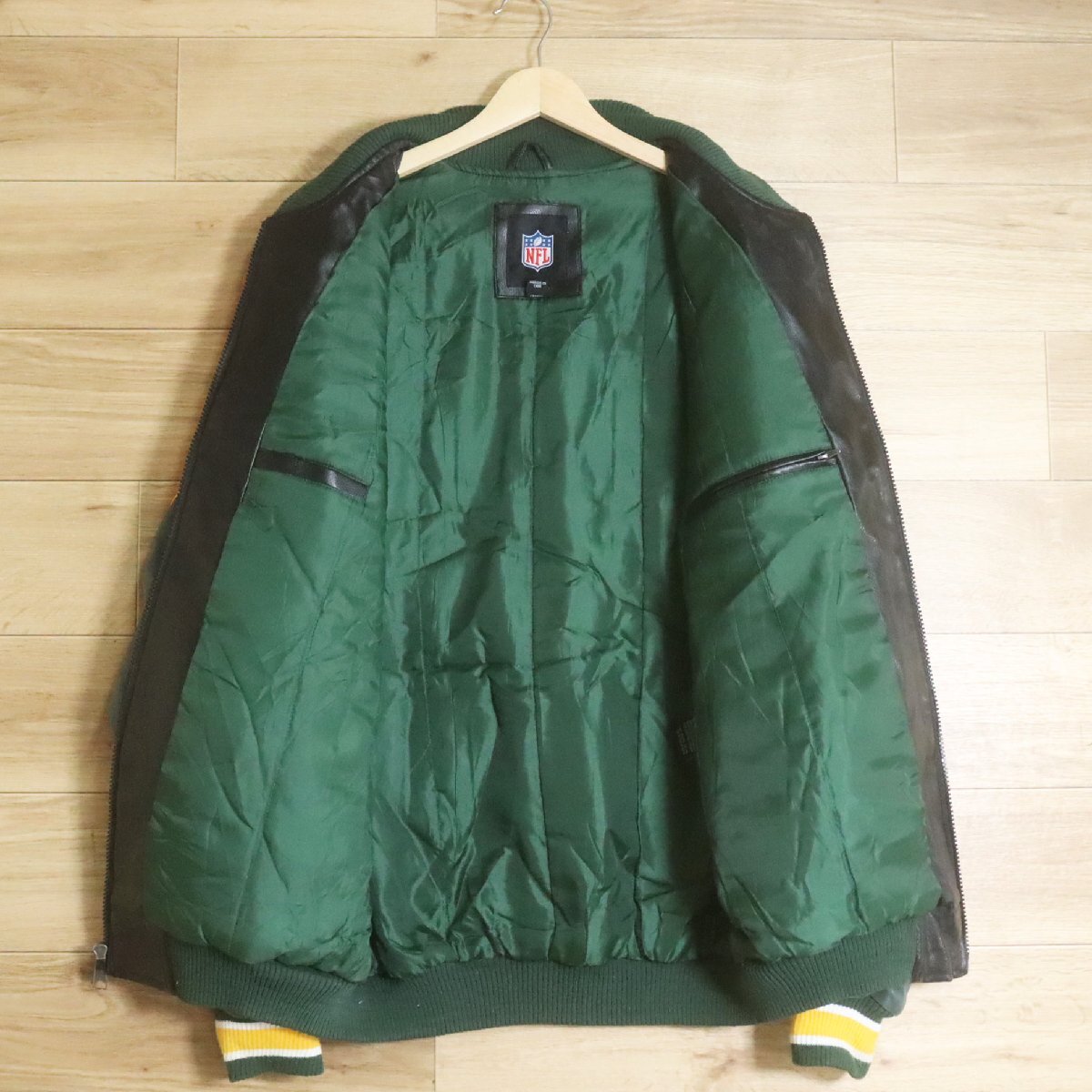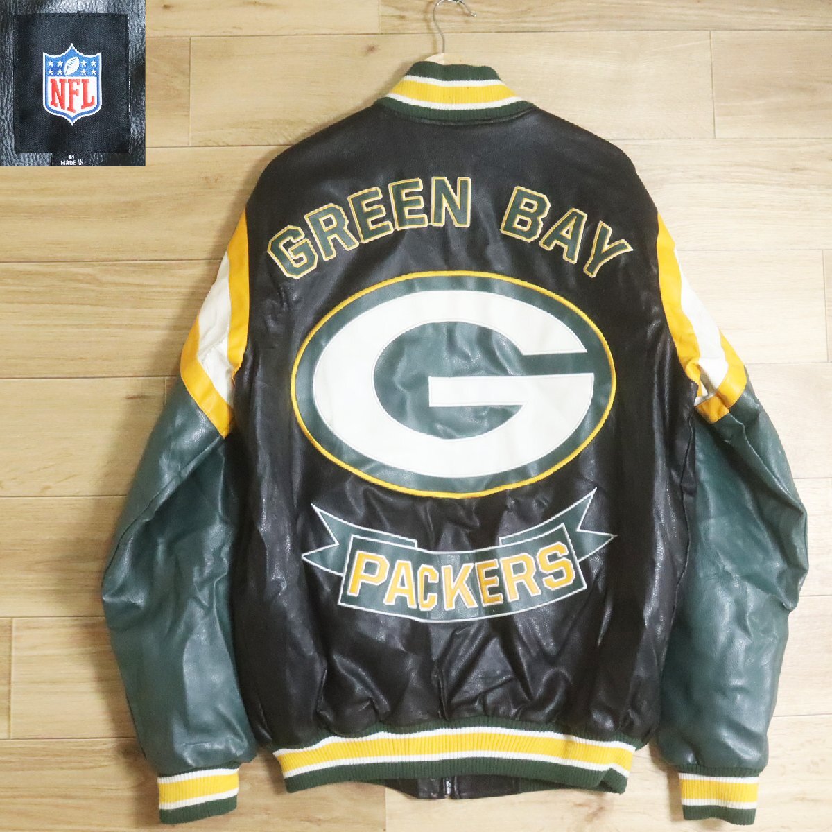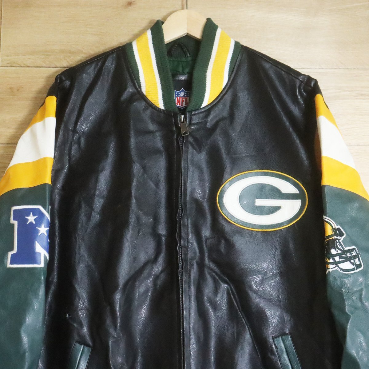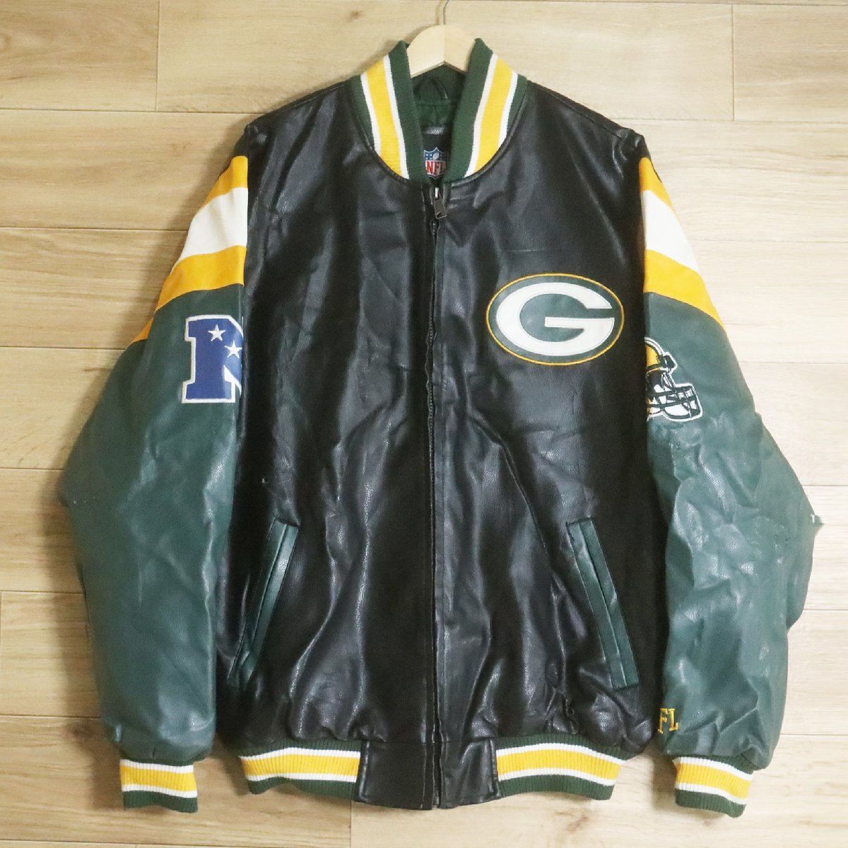 G6T/O8.25-2  NFL グリーンベイ・パッカーズ G-Ⅲ レザースタジャン 合皮 レザーブルゾン 革ジャン 皮ジャン M レザー古着