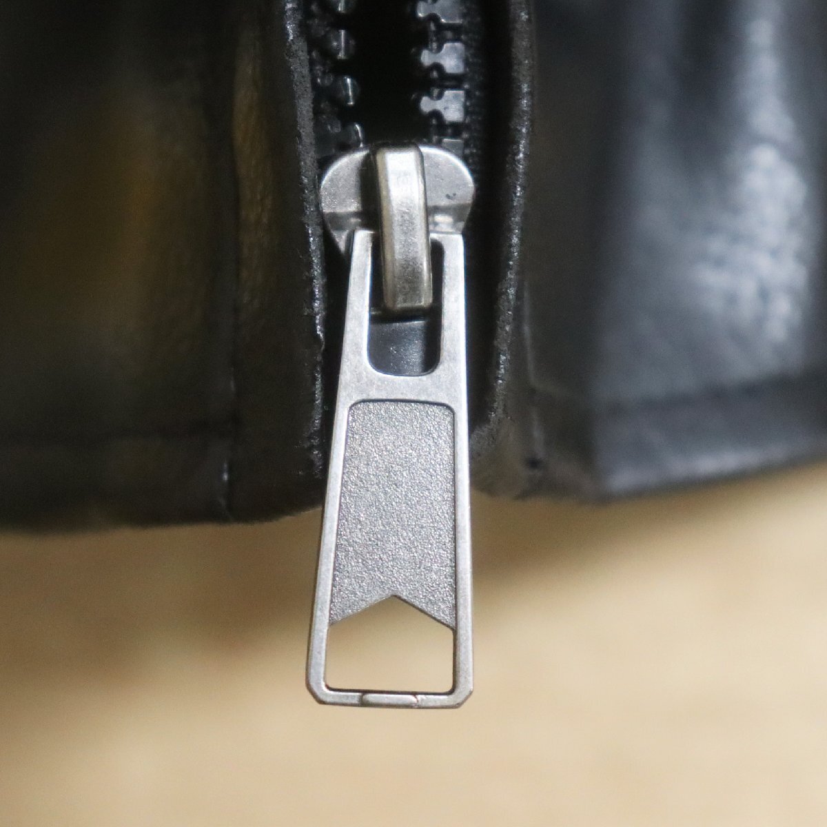 中古品です。使用感があります。写真にあるようにボディや袖にひび割れや剥がれ、右ポケット口にほつれがあります。