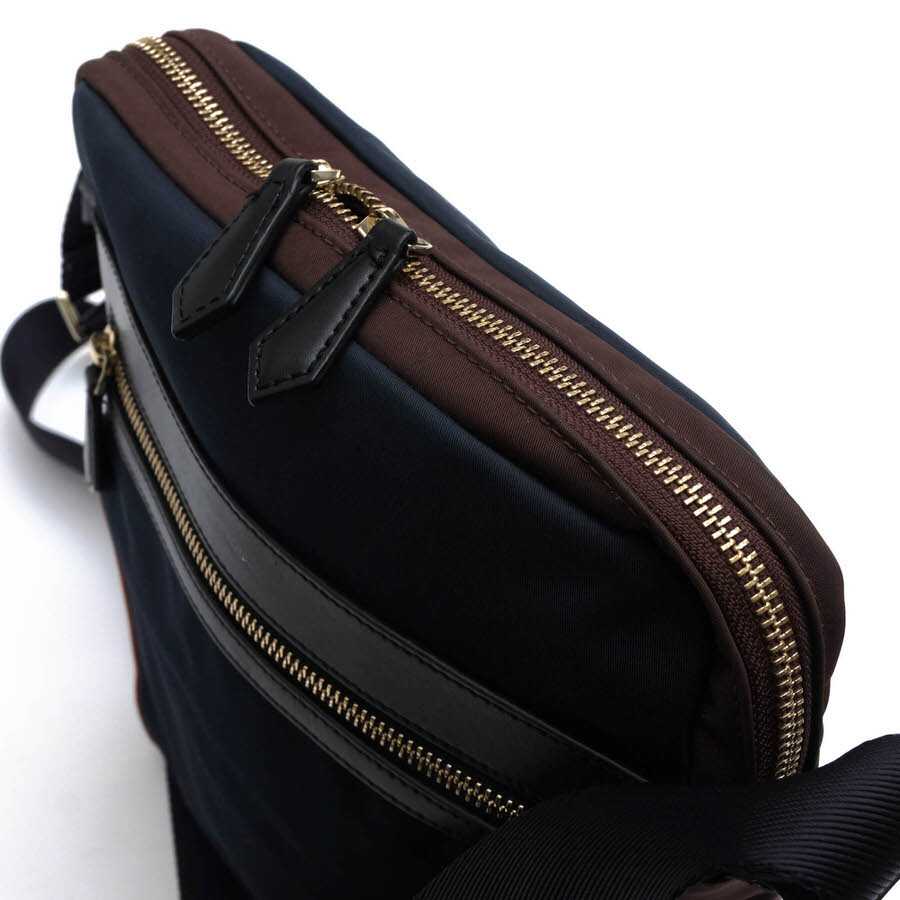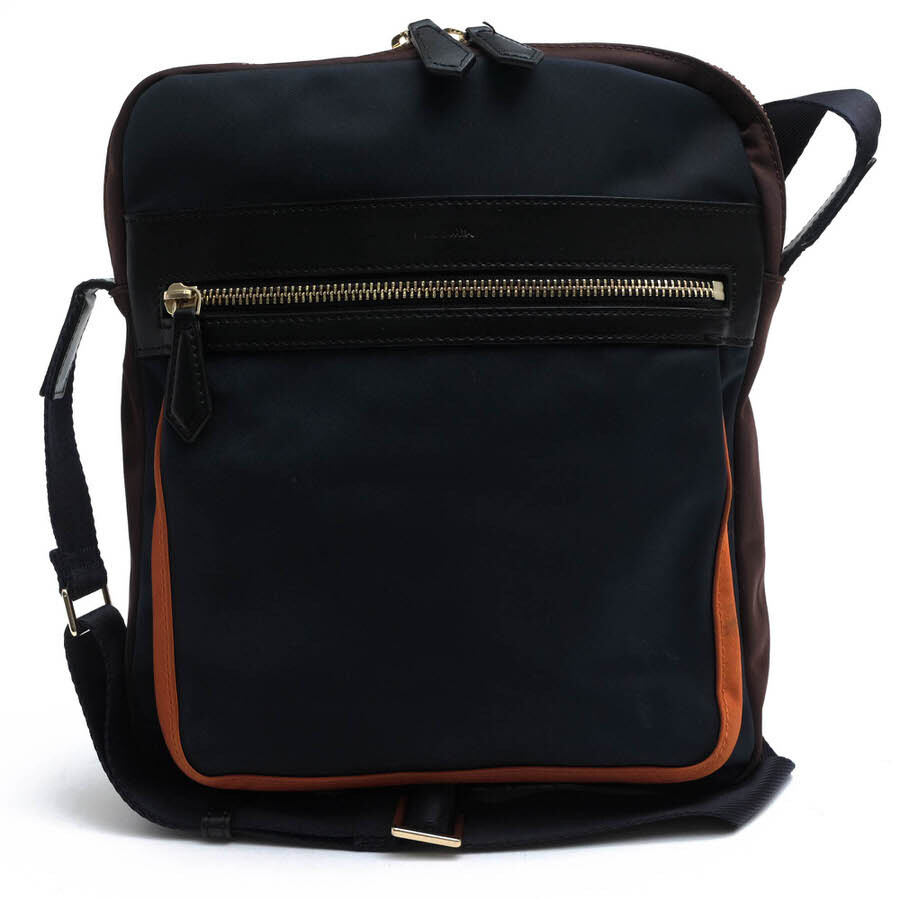 | ◆ブランド名 Paul Smith ◆サイズ詳細 横幅 約23cm 縦幅 約28cm マチ 約3cm ショルダー長さ 約120cm ◆仕様 ポケット×2 ファスナーポケット×2 ◆型番 873097 N311 PSN311 カラーフラッシュ COLOR FLASH ◆素材 上質なナイロン×革レザー ◆素材詳細 一部床革 ◆色 ネイビー 紺 ◆商品状態 中古品-良い ◆状態詳細 ブランドロゴ刻印が薄くなっています(画像1参照) ◆備考 ネイビー×ブラウン×オレンジ |