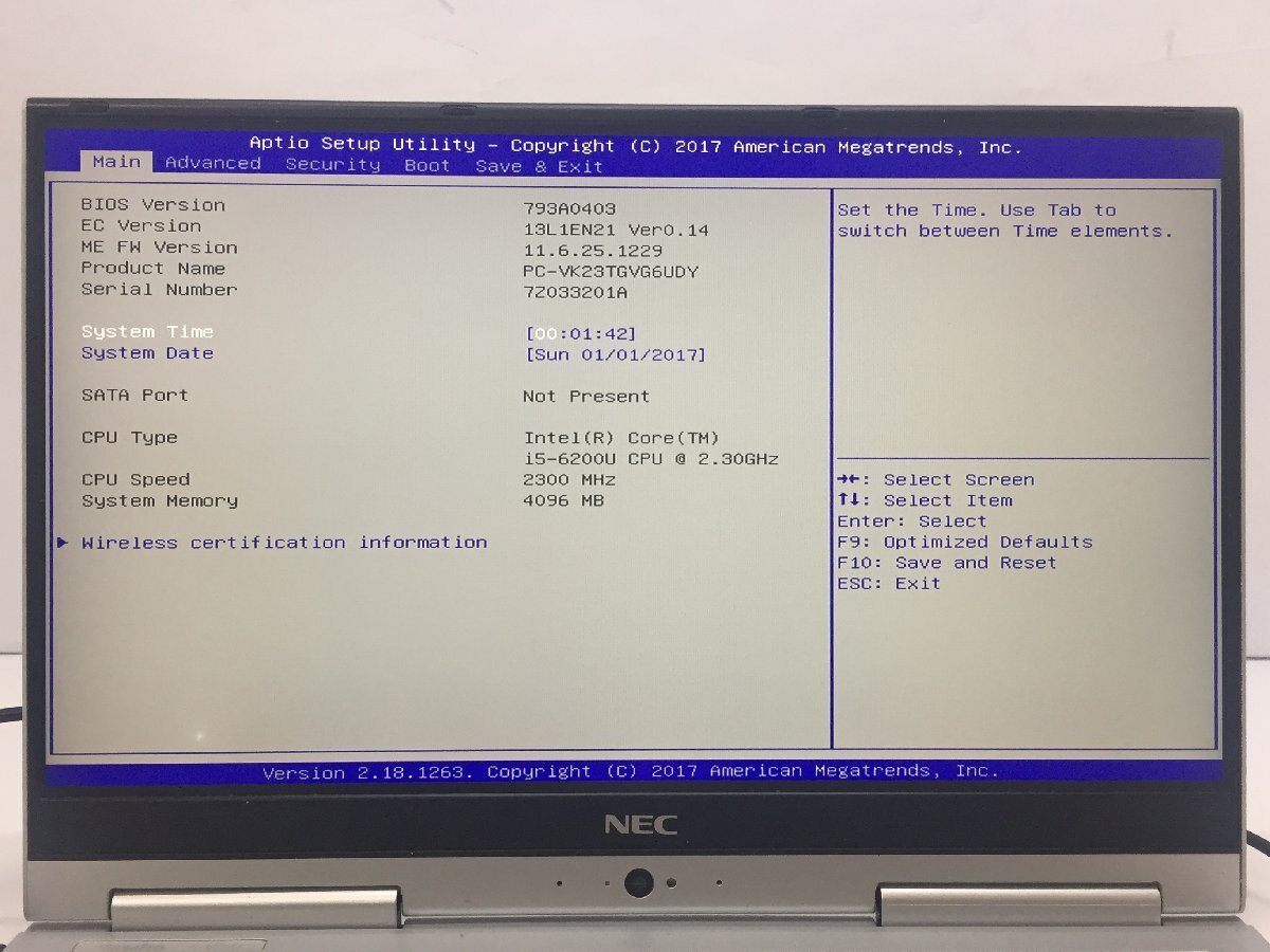 ジャンク/ NEC PC-VK23TGVG6UDY Intel Core i5-6200U メモリ4.1GB ストレージ無し 【K22297】