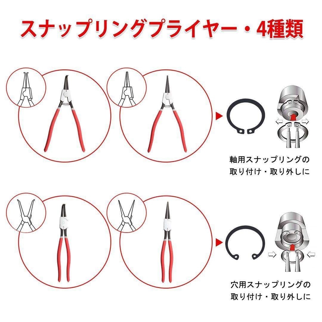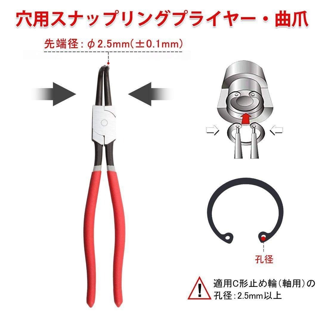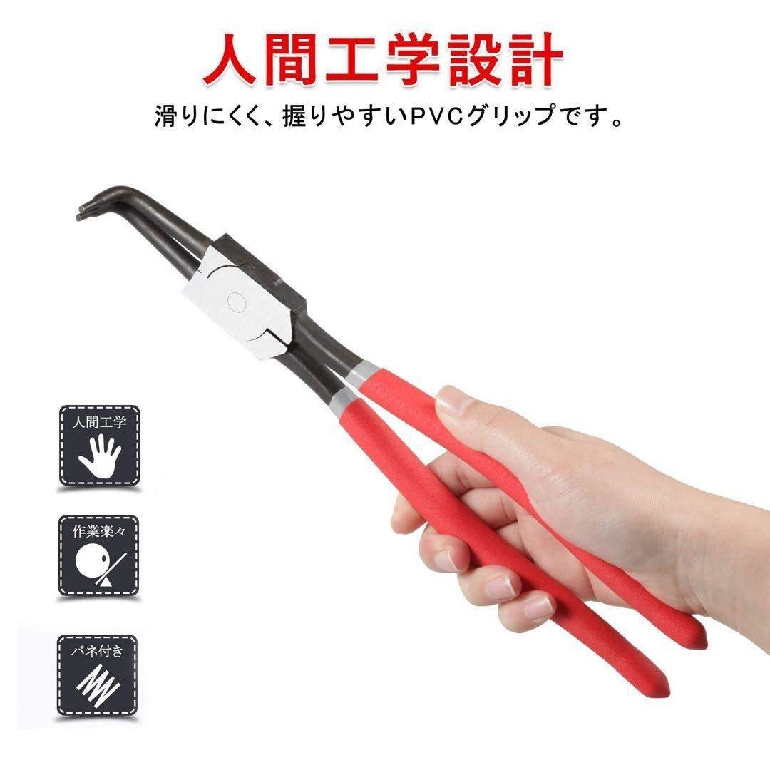 湾曲したジョーを備えたスナップリングプライヤーは、内部の保持リングの取り外しまたは取り付けに優れており、限られたスペースでより使いやすくなっています。 整備士の仕事をしている人に最適です。