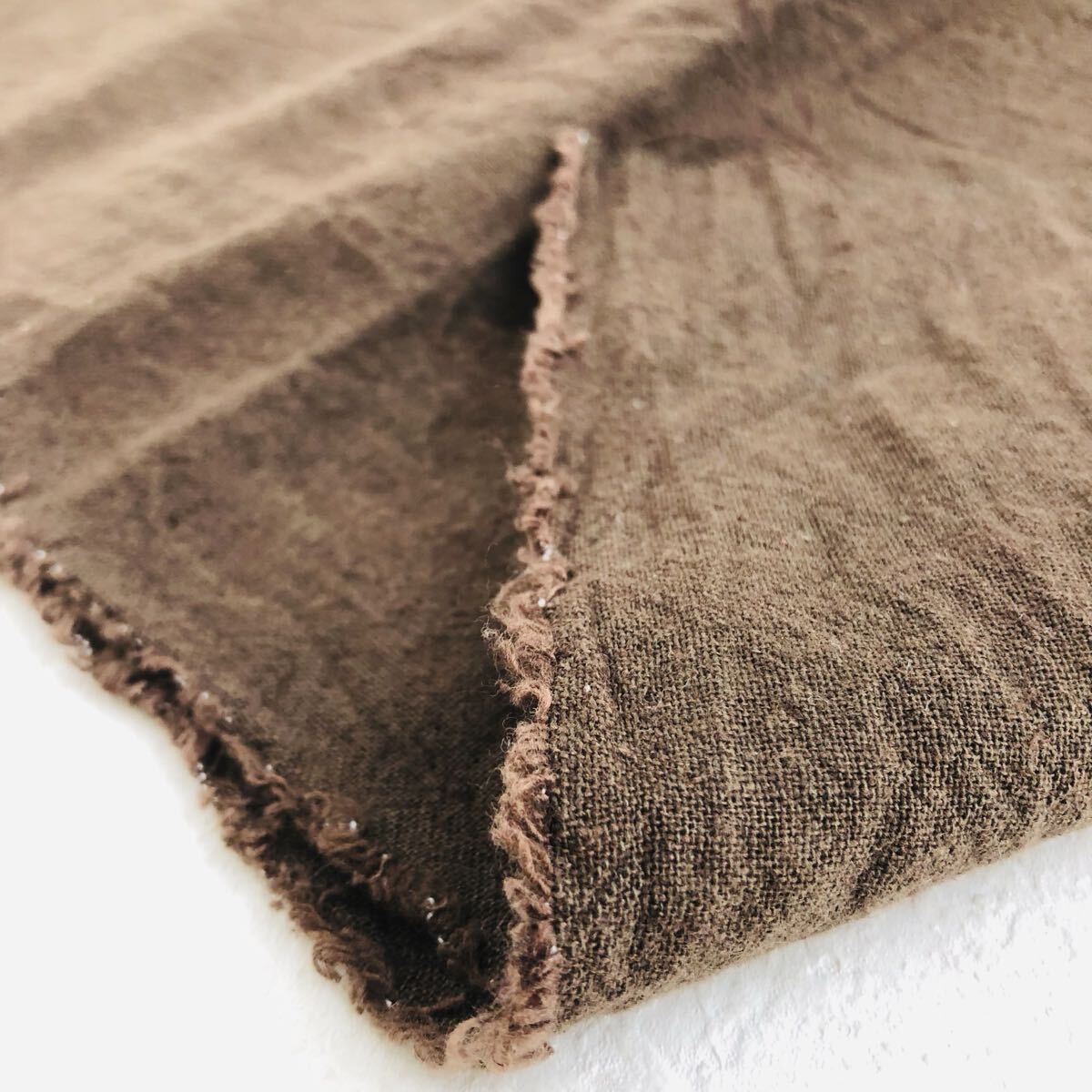 50cm 綿麻ワッシャー 105×50 無地 はぎれ 生地 カーキ 先染め ワッシャー生地 ブラウン