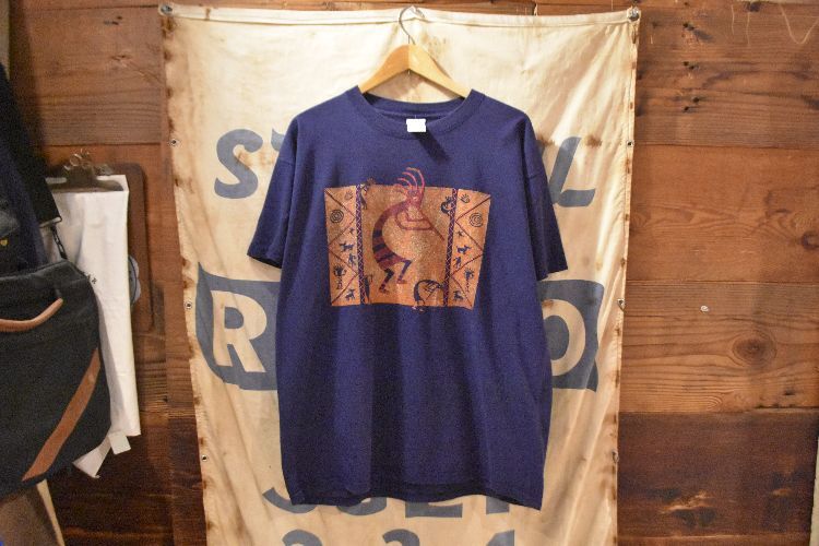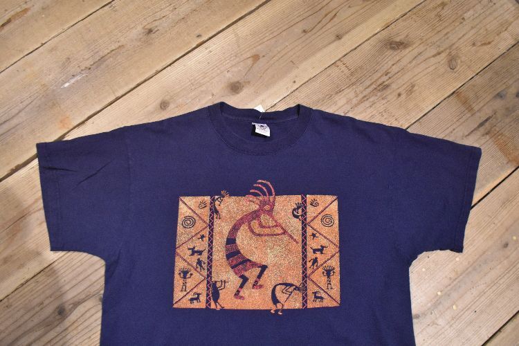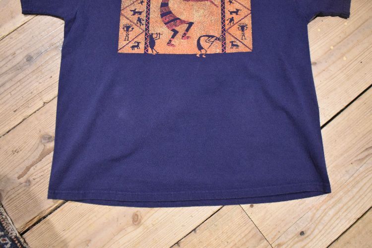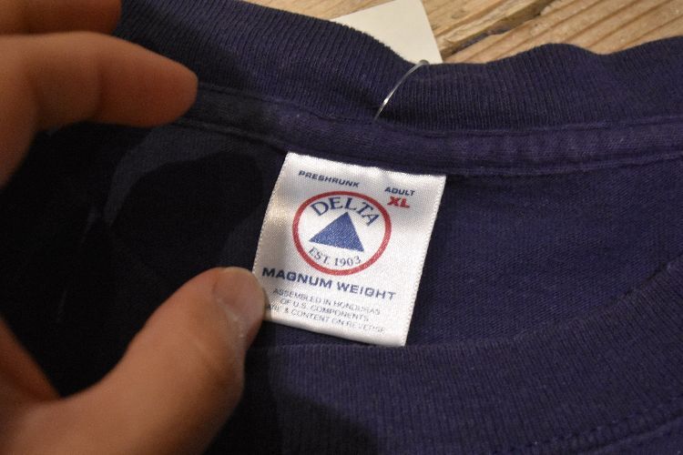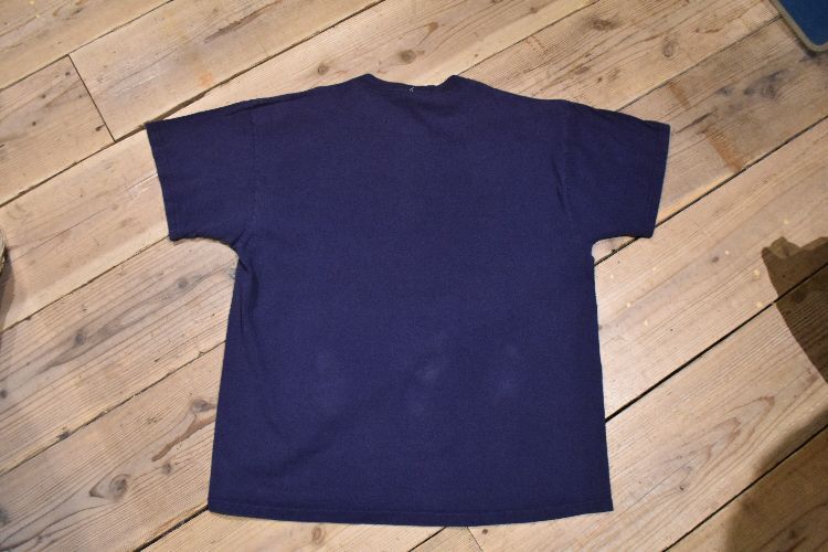 グッドプリント◎90sビンテージDELTAデルタボディ半袖クルーネックプリントTシャツXLネイビー紺アメカジストリートオールコットン w833