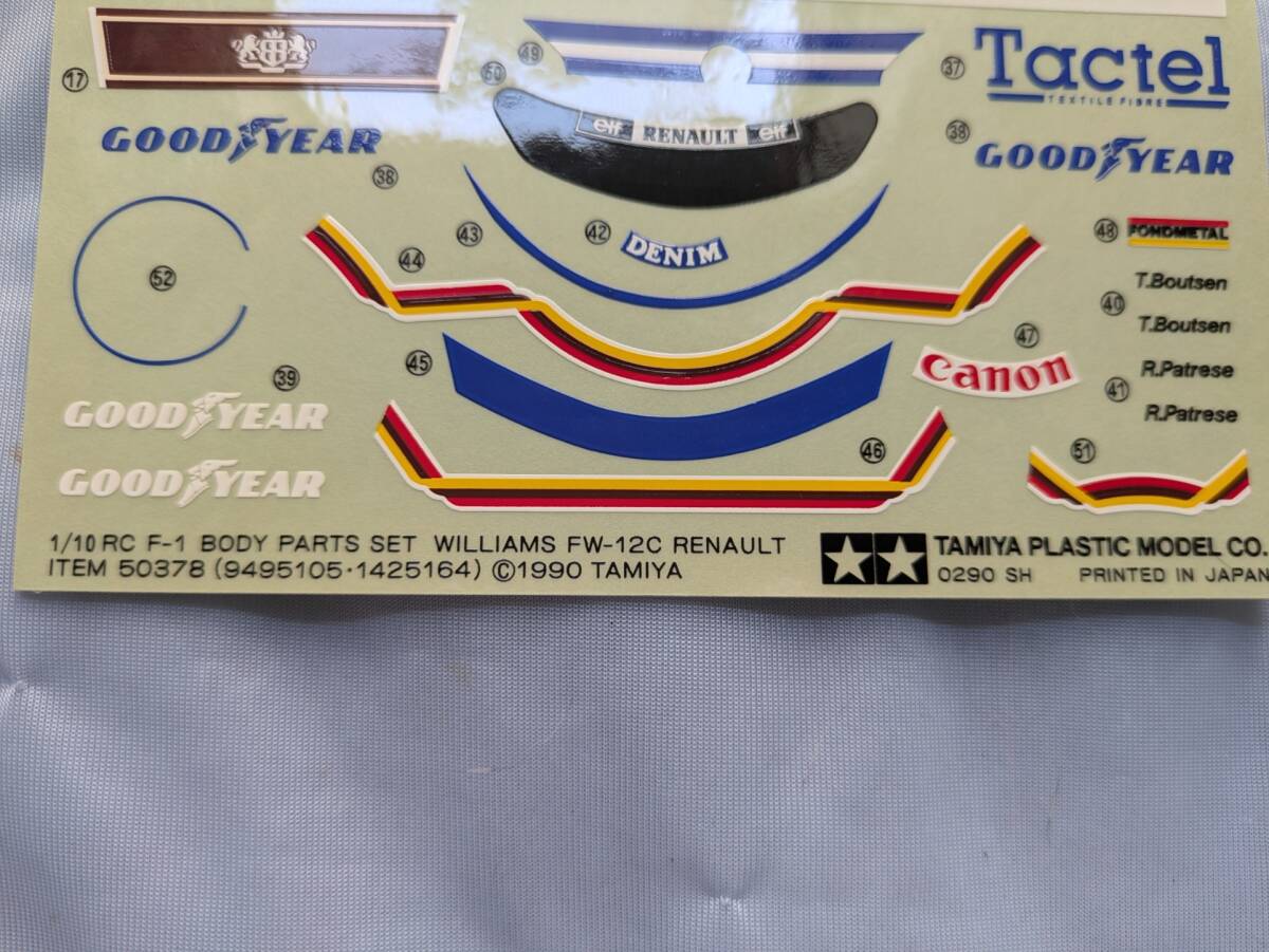 タミヤ1/10RC F1 ウイリアムズ FW-12C デカール 一部使用済み ジャンク 当時物 希少品