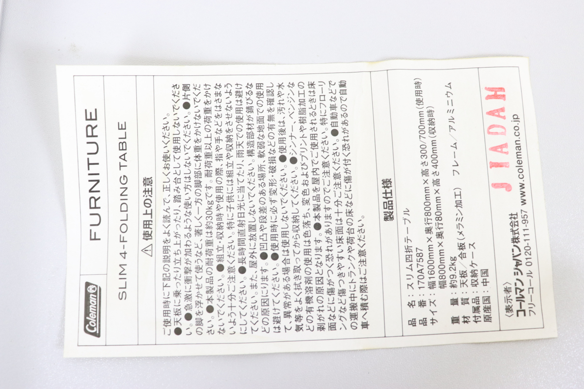 商品説明 | ★最後までお読みいただき、ご理解の上でのご入札をよろしくお願いいたします。 【JB004】 Coleman コールマン スリム四折テーブル 170A7587 キャンプ アウトドア レジャー_ZJL_C1007-J019 【商品状態】 基本的に中古品の為、スレや傷・汚れなどございます。 多数商品がある場合、傷や汚れを写真に載せきれない可能性もございます。 あらかじめご理解・ご了承の上入札をお願いいたします。 また、細かくクリーニングしている訳ではありませんので 状態を極度に気にされる方、神経質な方は入札をお控えください。 ■写真に写るもののみの販売となります。 写真にないものは付属いたしません。 画像をご確認の上、商品の状態に納得して頂いた方のみ入札をお願いいたします。 【サイズ】 折りたたんだ状態 W約40×H約80×D約8cm ※素人採寸のため多少の誤差はご容赦ください。 【取引ナビの対応日時】 ■平日9:00-18:00となります。※土日祝日は休業 【発送方法】 発送は佐川急便よりお送りいたします。 原則ご入金後、発送まで3日~7日お時間を頂いております。落札商品の量によって発送までのお時間が前後してしまう可能性があります。商品をお急ぎの方はご注意ください。 ※発送元地域が異なる商品の同梱はできません。 また土日祝日はヤフオクの取引全般をお休みしておりますので発送/連絡はできません。いつ頃発送するのか等の催促はおやめください。 ※沖縄・離島の方は【中継料】が発生し送料が高額になります為、佐川着払いとなります。 ※中継料が発生した場合、追加で中継料分の不足送料を請求させて頂きます。必ずご自身のお住まいをご確認頂いてから入金をお願い致します。 【直接引き取り】 引き取り場所は埼玉県久喜市になります。 詳しいご案内場所は落札後、取引ナビにてご連絡いたします。 受付時間:平日9-18時 ■手順 ① 取引情報の入力 ② yahoo!かんたん決済で支払うをクリック ③ 配送方法を直接引き取り0円を選択し決済を行ってください。 ④ 取引メッセージに 直接引き取り希望と、希望日、希望時間帯をお知らせください。 後程、ご案内の通知をいたします。 【注意事項】 ■発送連絡と同時に評価も入れております。評価不要の方はご落札時にメッセージでお知らせください。 ■商品到着後、破損があった場合は配送業者へ一度ご連絡をお願い致します。 ■発送方法の変更はお受けできません、また送料に納得がいかないままの入札はご遠慮ください。 ■商品到着後7日以上経ってからの返品・返金は対応出来ません。品物が到着次第すぐに商品の状態をご確認ください。 ★他にも沢山の商品を出品しております。 ご興味のある方は、他の商品も是非ご覧下さい。