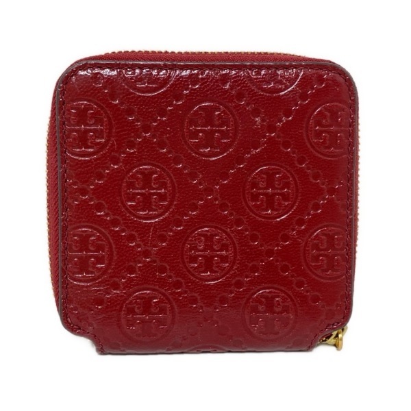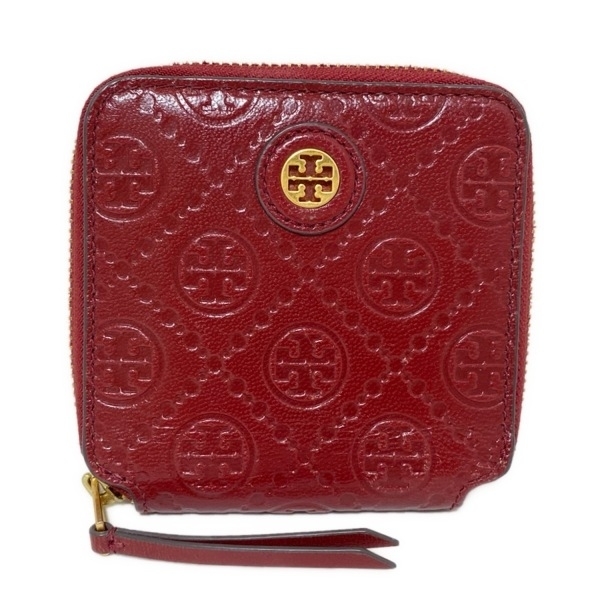 トリーバーチ TORY BURCH 2つ折り財布/ミニ/コンパクト - レザー ボルドー 型押し加工/ラウンドファスナー 財布