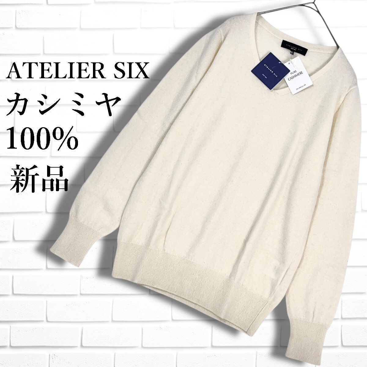 ◆新品◆ ATELIER SIX アトリエシックス カシミヤ 100% ニット 長袖 セーター 白 ホワイト系 レディース 40 ◆タグ付き 送料無料◆ 1525J◇