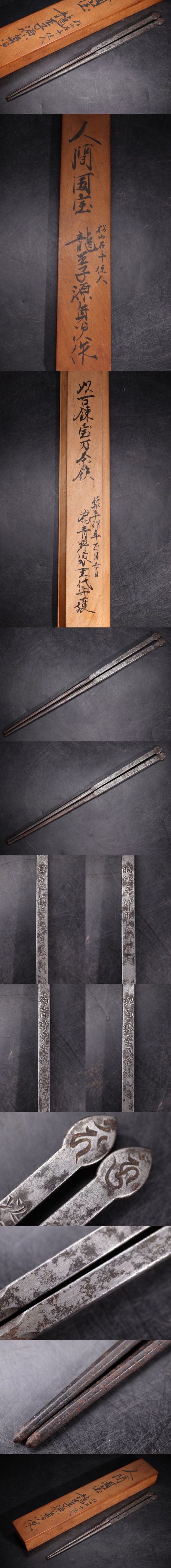 | 人間国宝 龍王子源貞次 作 鉄製 火箸 共箱付 / 彫金 金工 古鉄 箸 煎茶道具 煎茶飾 .G2769 |