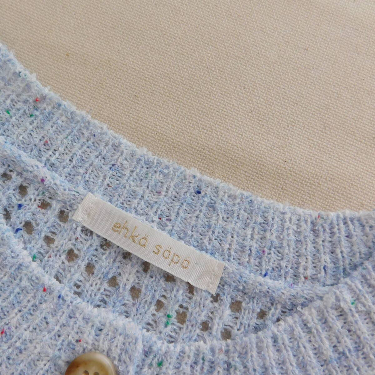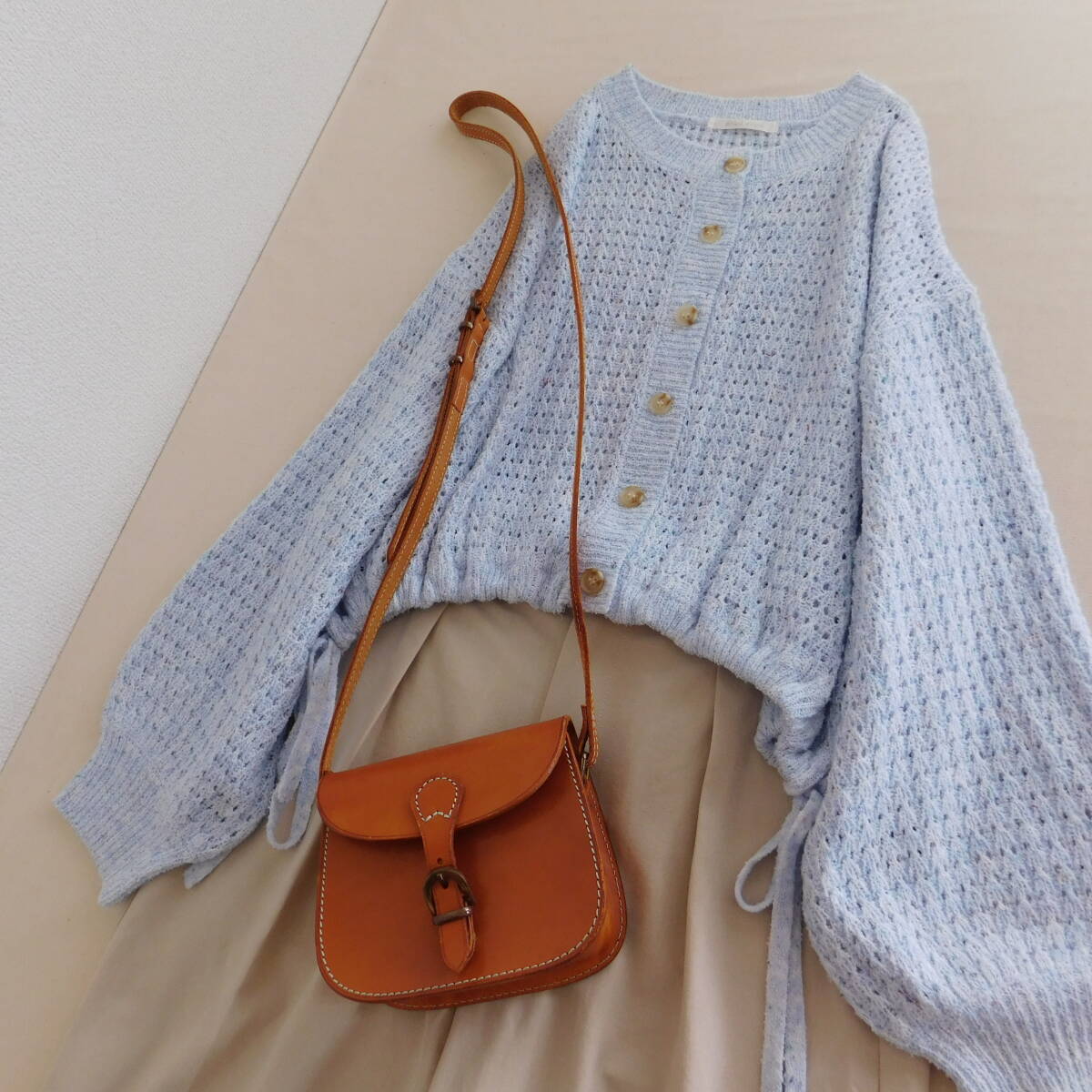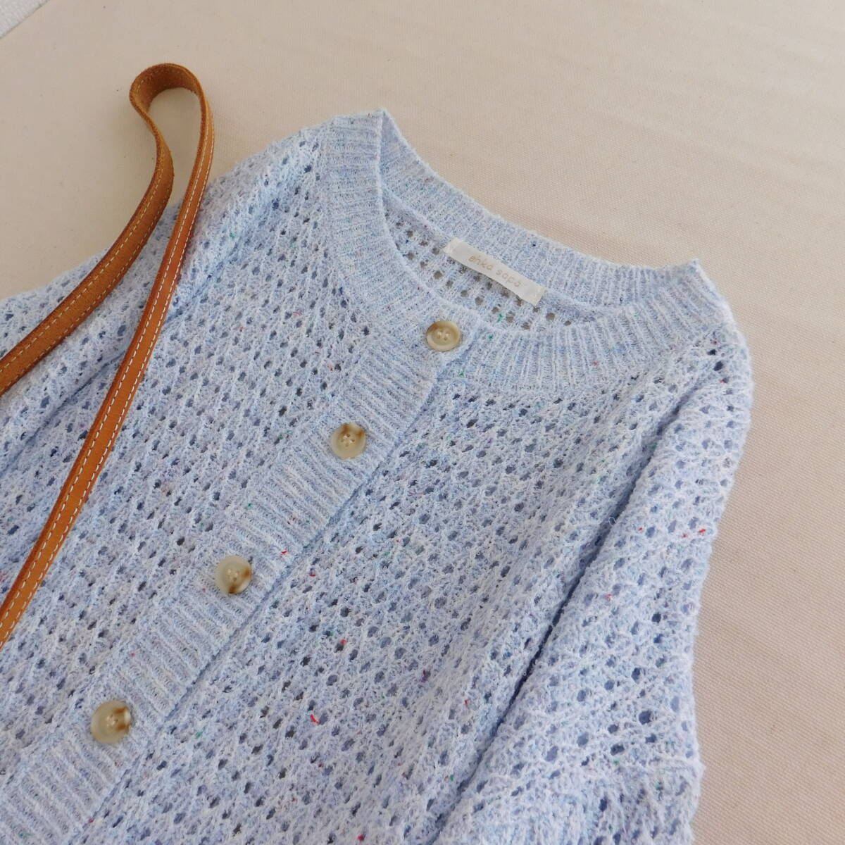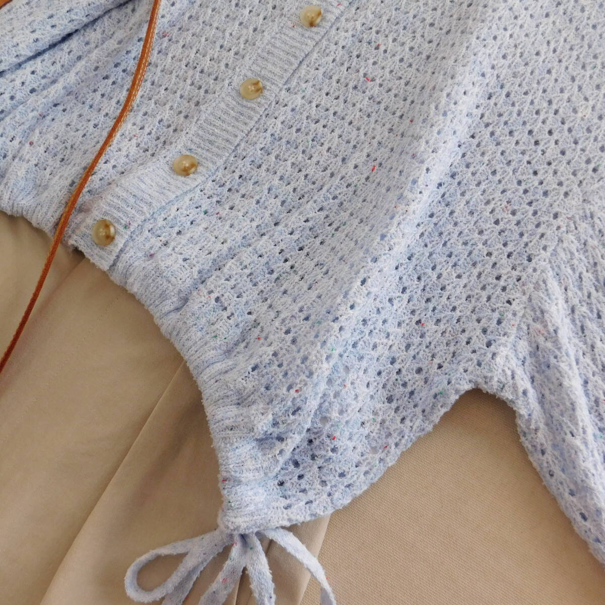 水色ミックスカラーのドロストカーディガンがかわいいです。