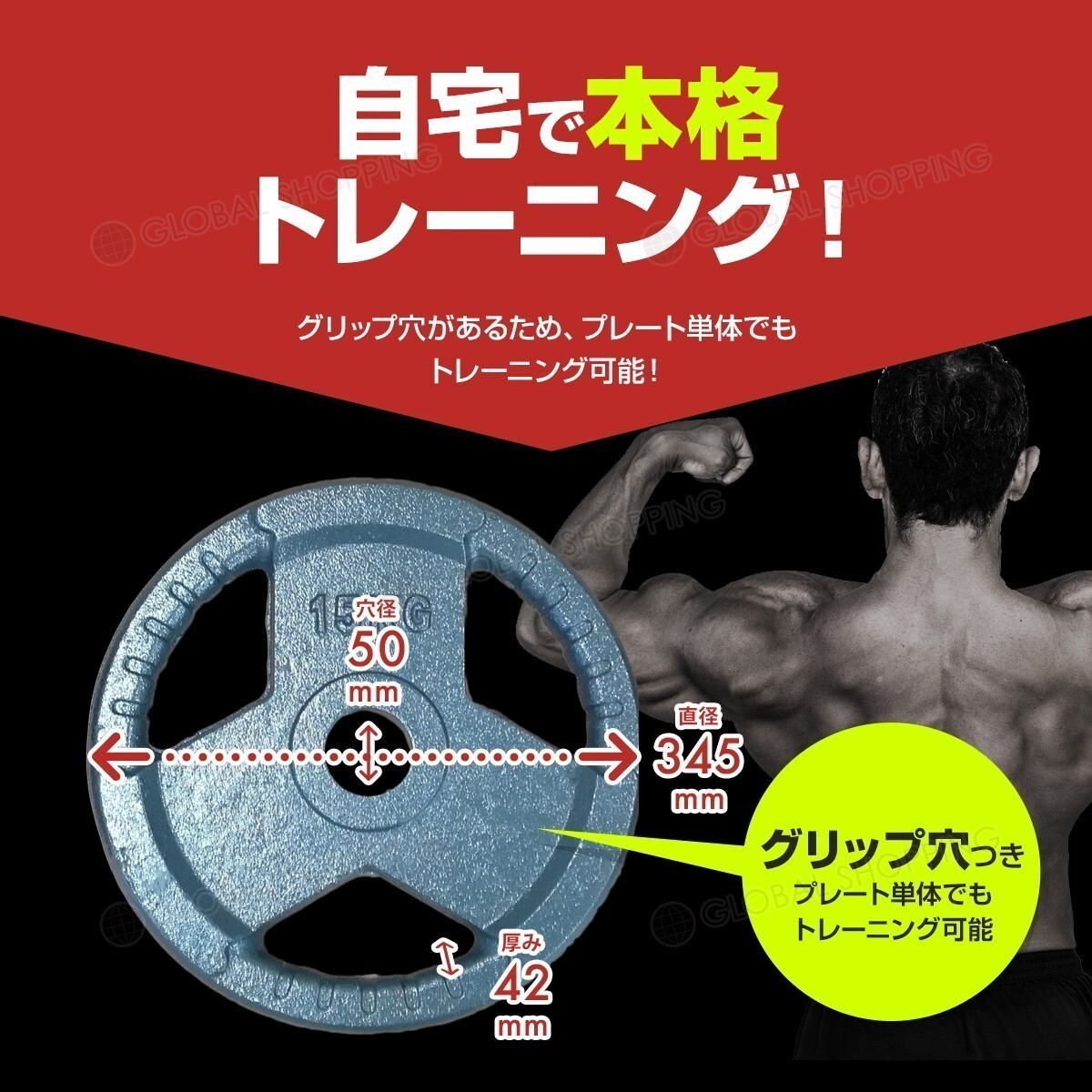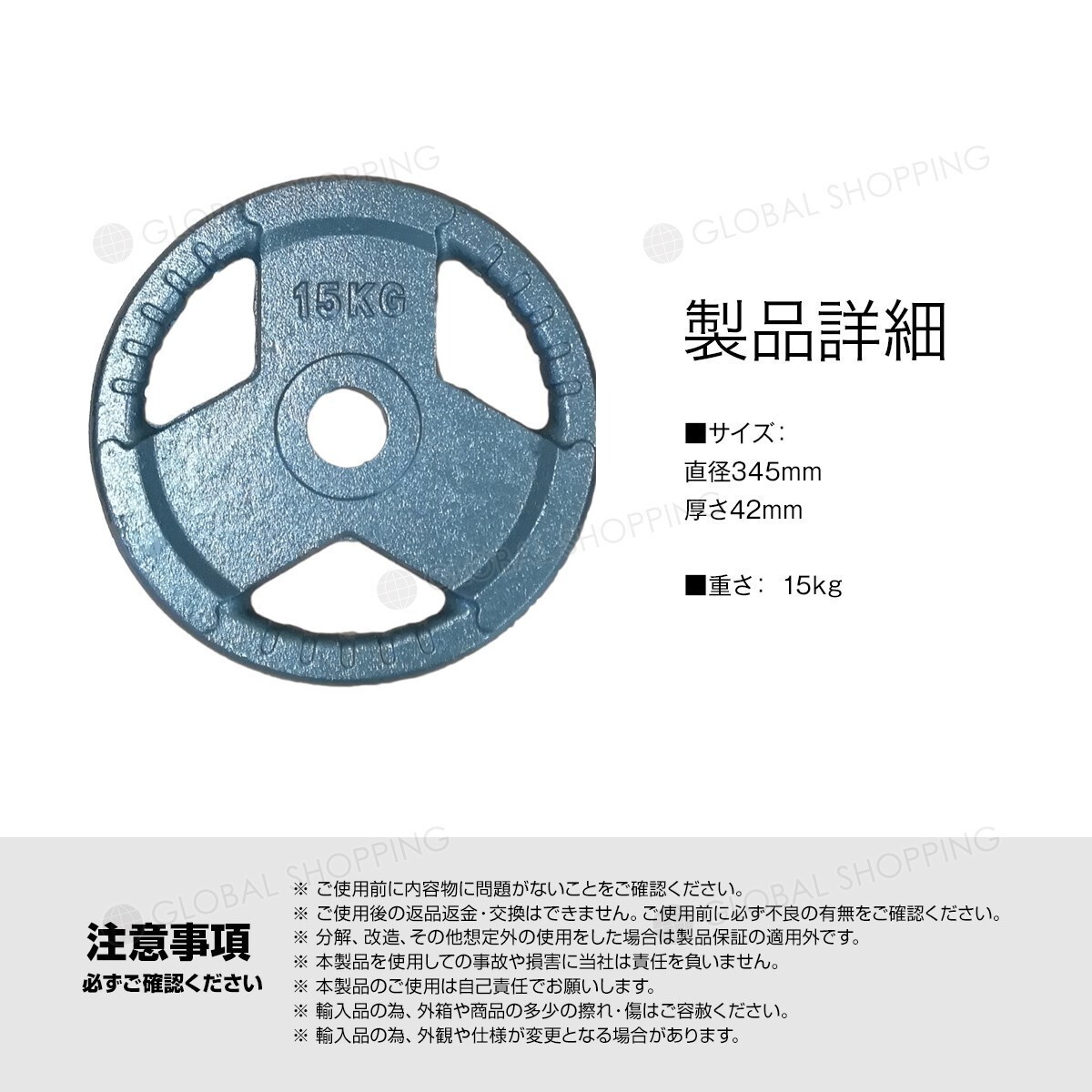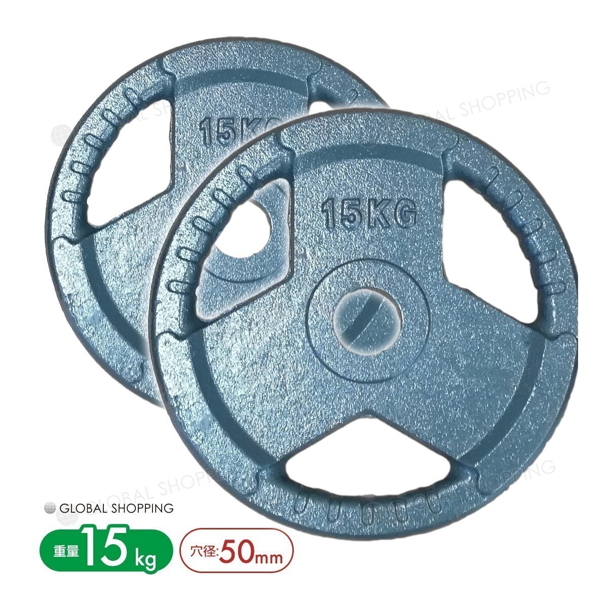 3穴 アイアン ダンベルプレート 15kg×2 50mmシャフト 穴52mm ダンベル トレーニング バーベル 筋トレ ベンチプレス ウエイトトレーニング
