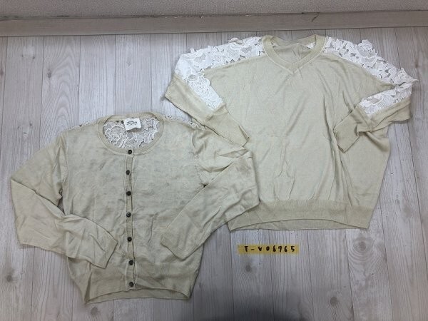 SPINLESS レディース レース切り替え 薄手 ニットソー&カーディガン アンサンブル アイボリー白 です。