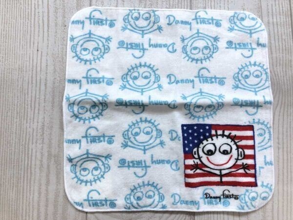 新品 ダニーファースト Danny first 90s アメカジ キャラクターモノグラム 総柄 タオルハンカチ ミニサイズ 綿100% 日本製 20×20 白水色です。