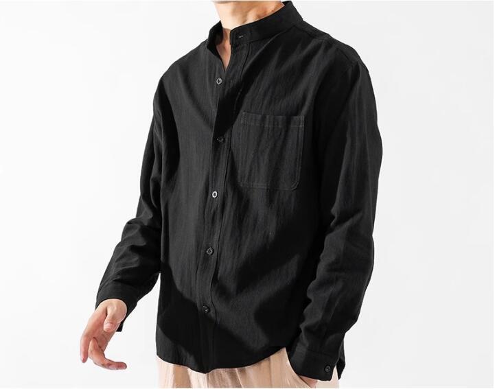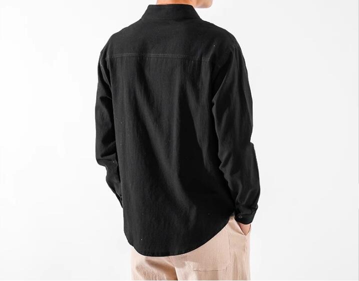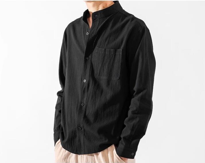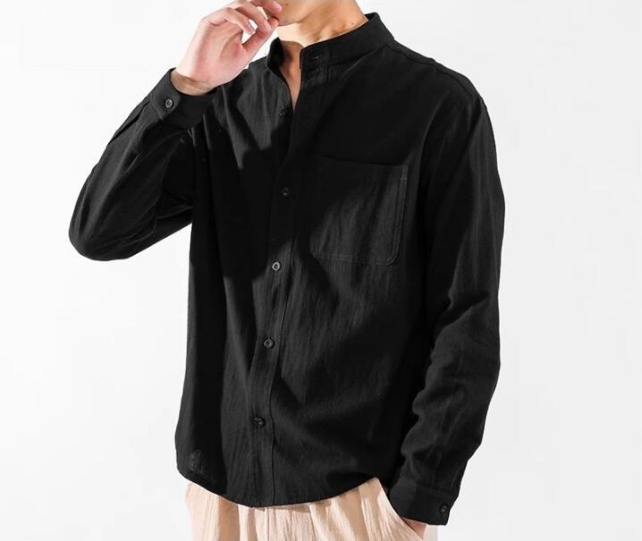 新作リネンシャツ メンズ 麻 シャツ 長袖 綿麻シャツ シンプル カジュアルシャツ 無地 欧米風 ゆったり 前開 秋新作 黒XXL