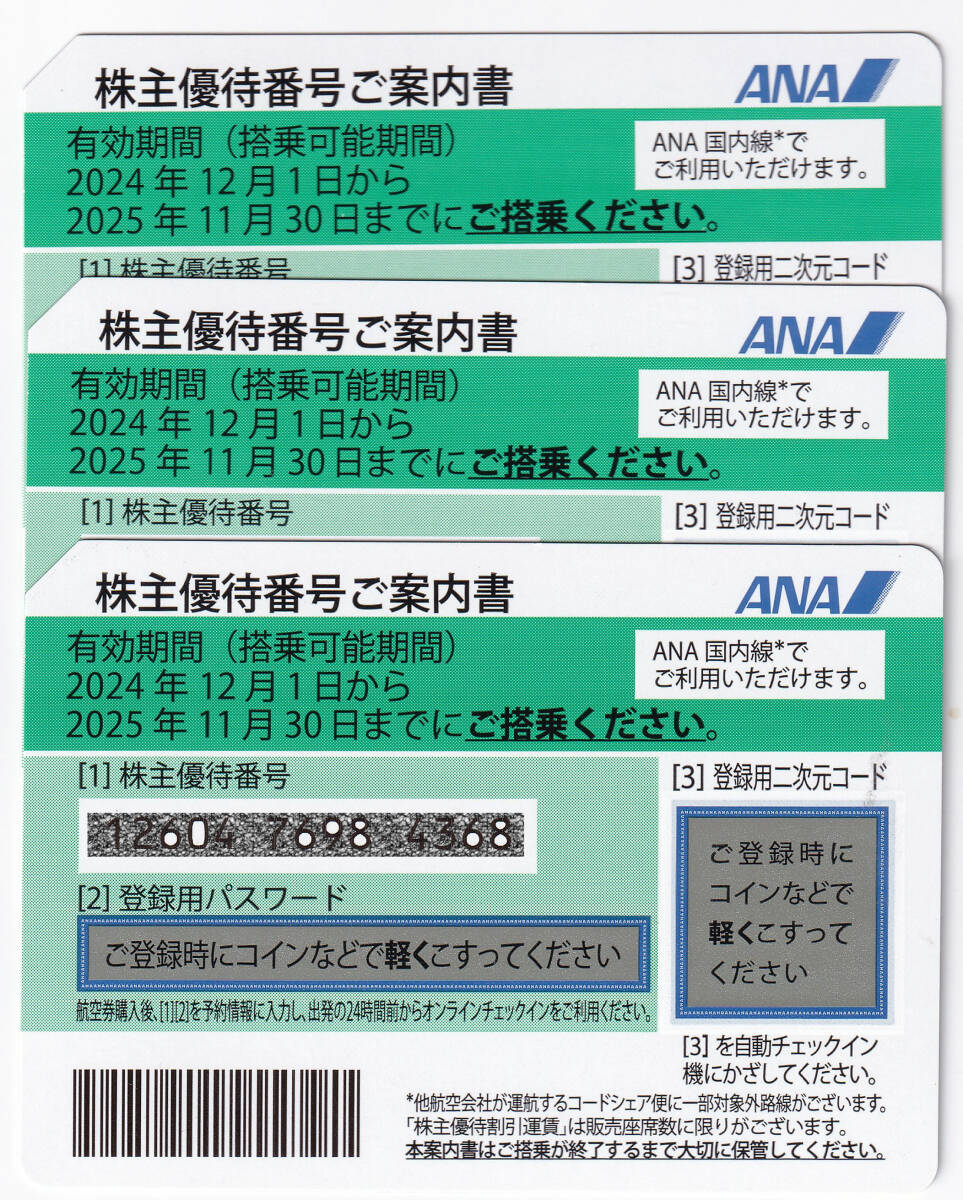 【番号通知】ANA株主優待券3枚セット 2025年11月末日まで有効