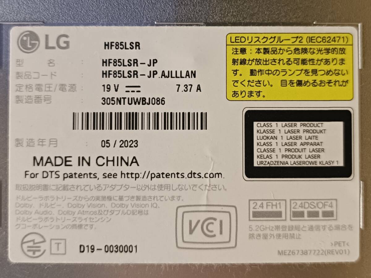 商 品 名 LG ELECTRONICS(エルジー・エレクトロニクス) HF85LSR 超単焦点プロジェクター【中古動作品ですがジャンク扱い】