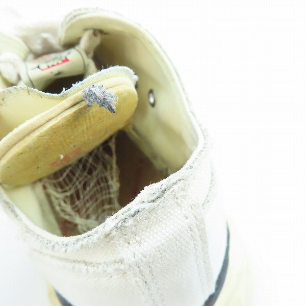 ※ソール剥がれが広範囲にございますので、観賞用・コレクション用とお考え下さい。 保管中・輸送中に破損が拡がる恐れのほか、劣化や加水分解の進行の恐れもある商品になります。日常使用としての機能の無い事をご了承の上、ご入札下さい。 ※恐れ入りますが、観賞用ですので商品の状態などに関してのクレームはご遠慮下さい。 ※使用に伴い、シワ、スレ、汚れ、毛羽立ち、塗装ハゲ、ソールのすり減り、インソールの破損等が見受けられます。 | |||||||||||||||||||||||||