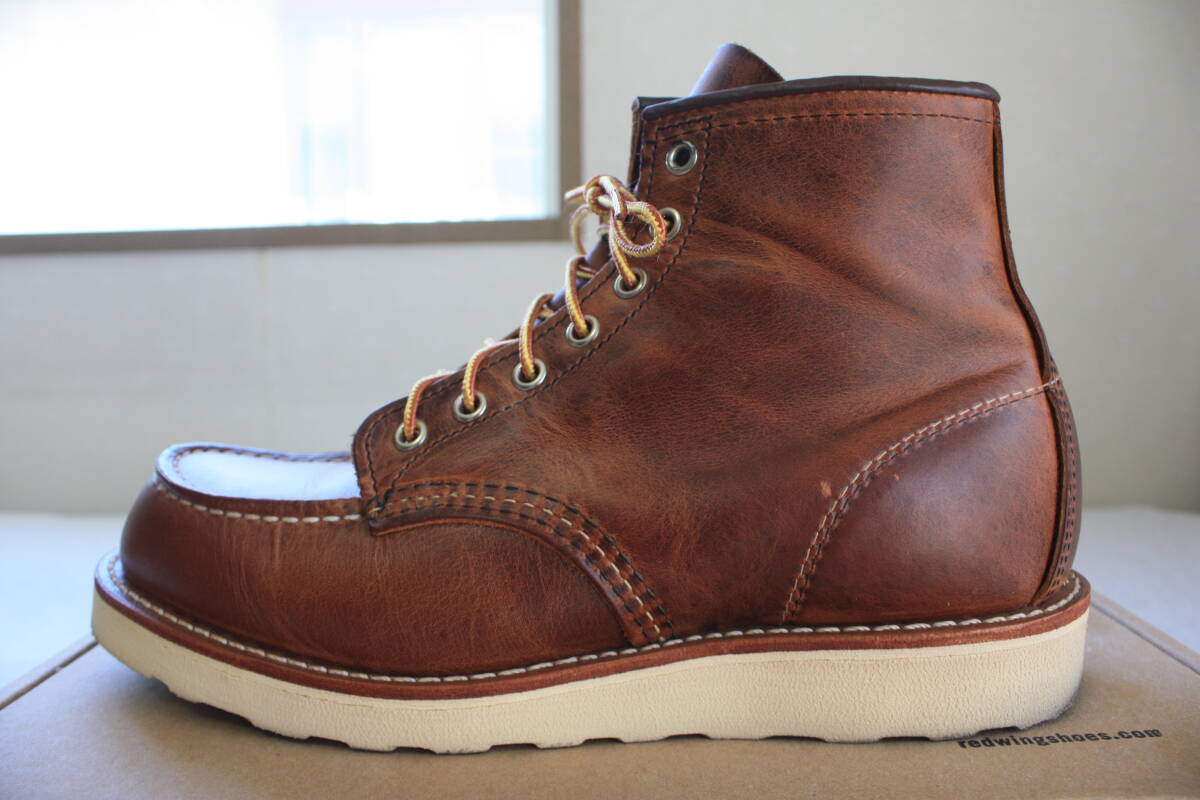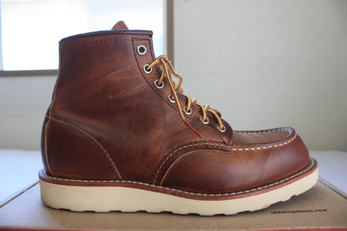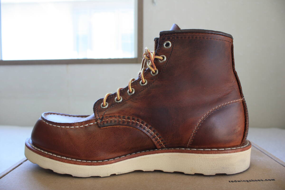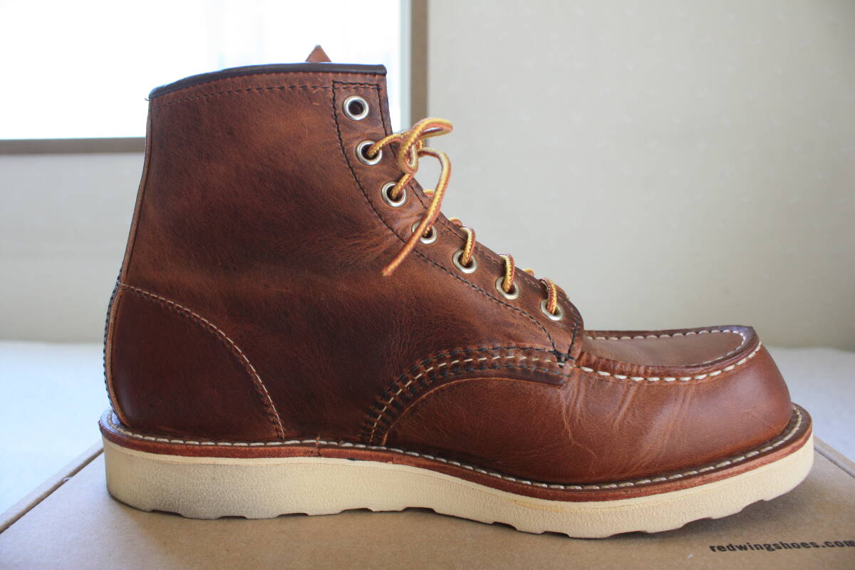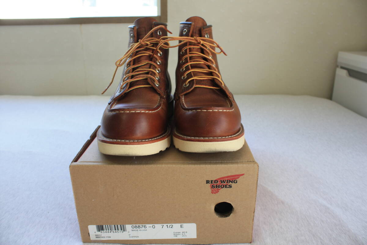 ご閲覧ありがとうございます。 レッドウイング8876 サイズ7ハーフ、ワイズE です。 約2年前に神戸高架下のセレクトショップで購入しましたが、同シリーズ、カラバリで複数足所有しており、本品はお気に入りの1足でしたが、中高年の当方が履くには色がやや明るいため出品させて頂きました。使用感はありますが、レッドウイング純正のインソールをはめて使用していたため、ブーツの内側インソールは綺麗です。タバコ吸いません、ペットもいません。購入時に付属していたもの、正規店購入の証明書、箱、ございます。よろしくお願いいたします。 サイズ...25.5cm カラー...ブラウン系 素材...本革