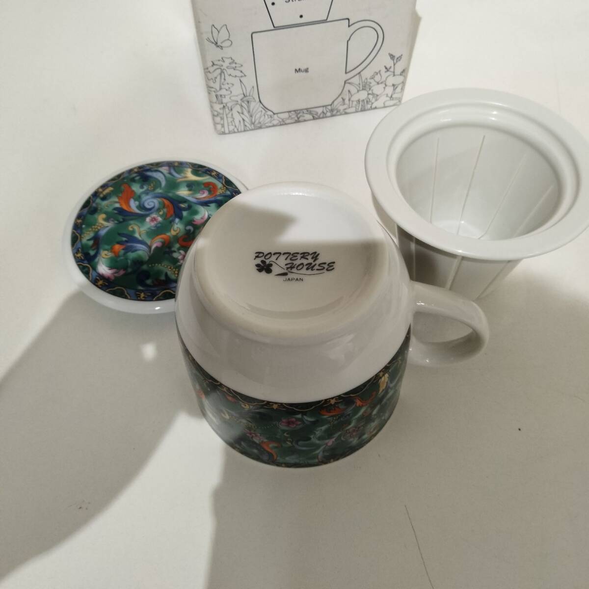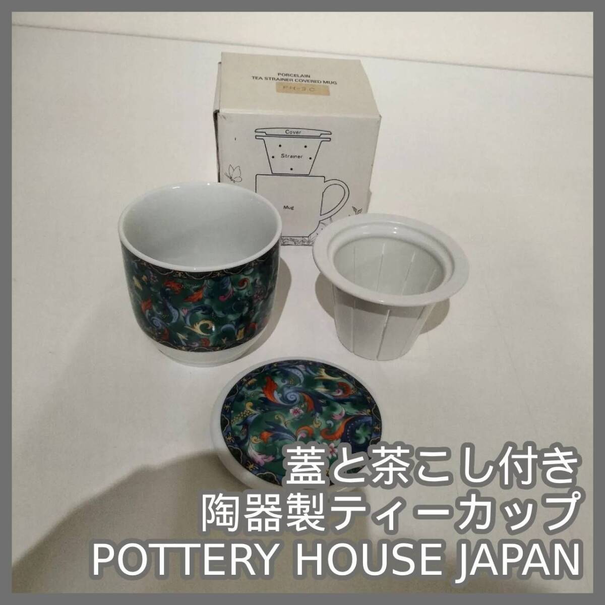 蓋と茶こし付き 陶器製ティーカップ POTTERY HOUSE JAPAN
