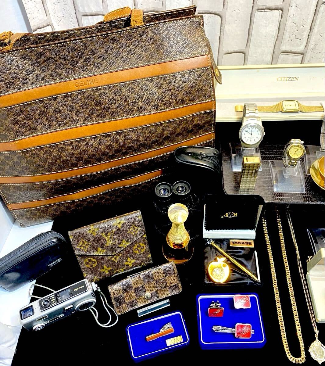 I194 遺品整理 アクセサリー 腕時計 おまとめ ルイヴィトン セリーヌ クリスチャンディオール バーバリー セイコー シチズン サルベッキオ ヤナセ ミノルタ カメラ 真珠 金杯 香水 ジャンク