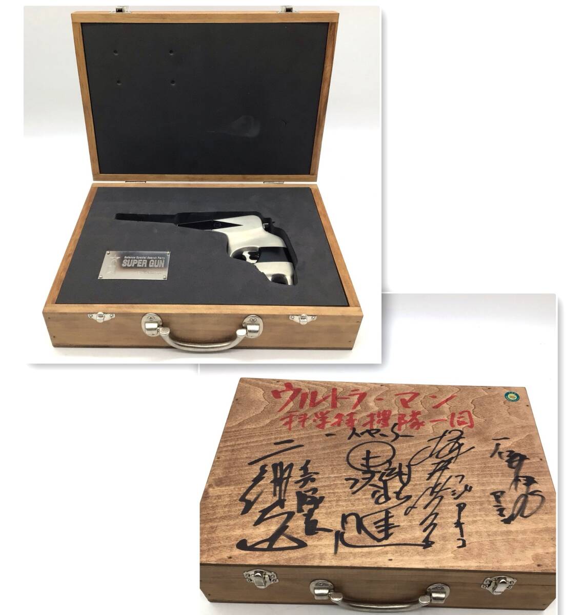 | 商品説明 | ・円谷プロ公式の金属製スーパーガンです。 ・ウルトラマン劇中で科学特捜隊が使用した銃を忠実に再現したプロップサイズモデル。 ・東京の老舗メーカー「バイス社」によるフルメタル仕様で、重量感のある本格的な造りです。 ・木製ケースの外箱には、科学特捜隊メンバー、ハヤタ隊員(黒部進)、フジ・アキコ隊員(桜井浩子)、 イデ隊員(二瓶正也)、アラシ隊員(石井伊吉/毒蝮三太夫)4名による直筆サインが入っています。 ・ウルトラマン黎明期を支えたメンバーの貴重な直筆サイン入り。 ・特撮ファンやウルトラマンコレクターに強くおすすめできる希少な逸品です。 ・実際にお品物を素手で触ったためか皮脂のような汚れや擦れ/黒ずみ/くすみ等が見られます。 ・ケースも劣化の為、色あせしています。 ・写真にて状態をご判断ください。 |