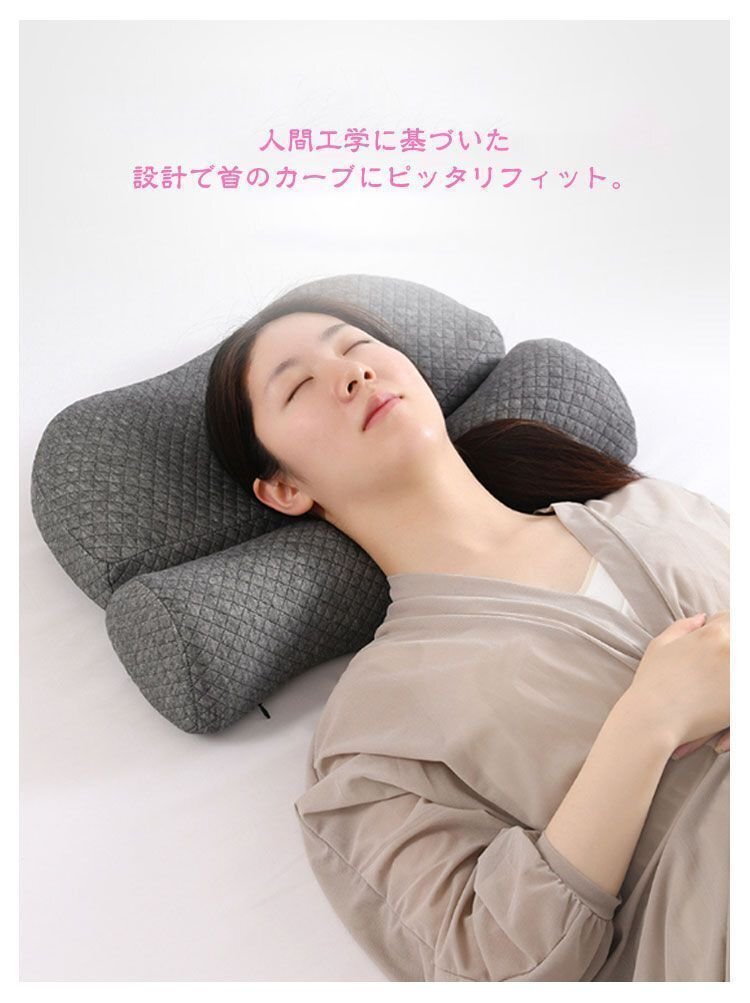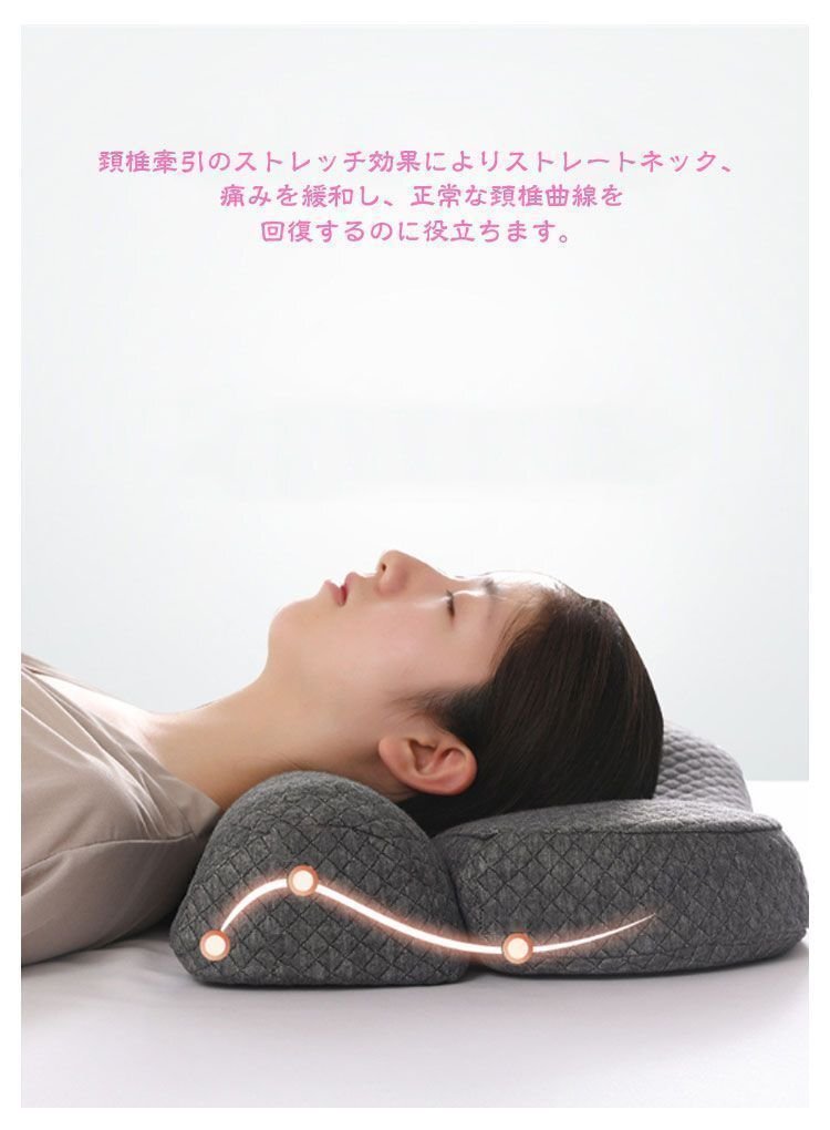 サイズについての説明:[サイズ]52*35cm 厚さ約11cm 素材:[素材]低反発メモリーフォーム [特徴] 人間工学に基づいた設計で首のカーブにピッタリフィット. 頸椎にぴったりとフィットし,睡眠時の負担を激減. 頚椎牽引のストレッチ効果によりストレートネック,痛みを緩和し,正常な頚椎曲線を回復するのに役立ちます. 低反発メモリーフォーム素材を採用し,柔らかすぎず硬すぎない適度な反発力で体圧を分散し,リラックスして安眠できます. 横向き寝・仰向き寝,どちらにも対応します.長期間に使えば,寝付けない,睡眠浅い,目が覚めやすい,寝返りなどの障害を緩めます.