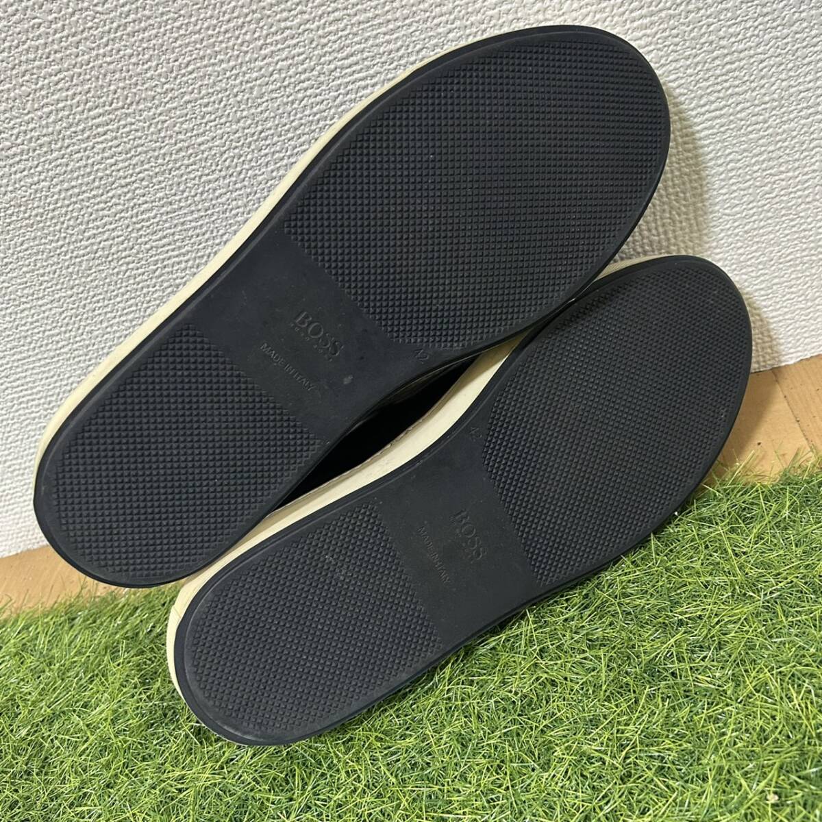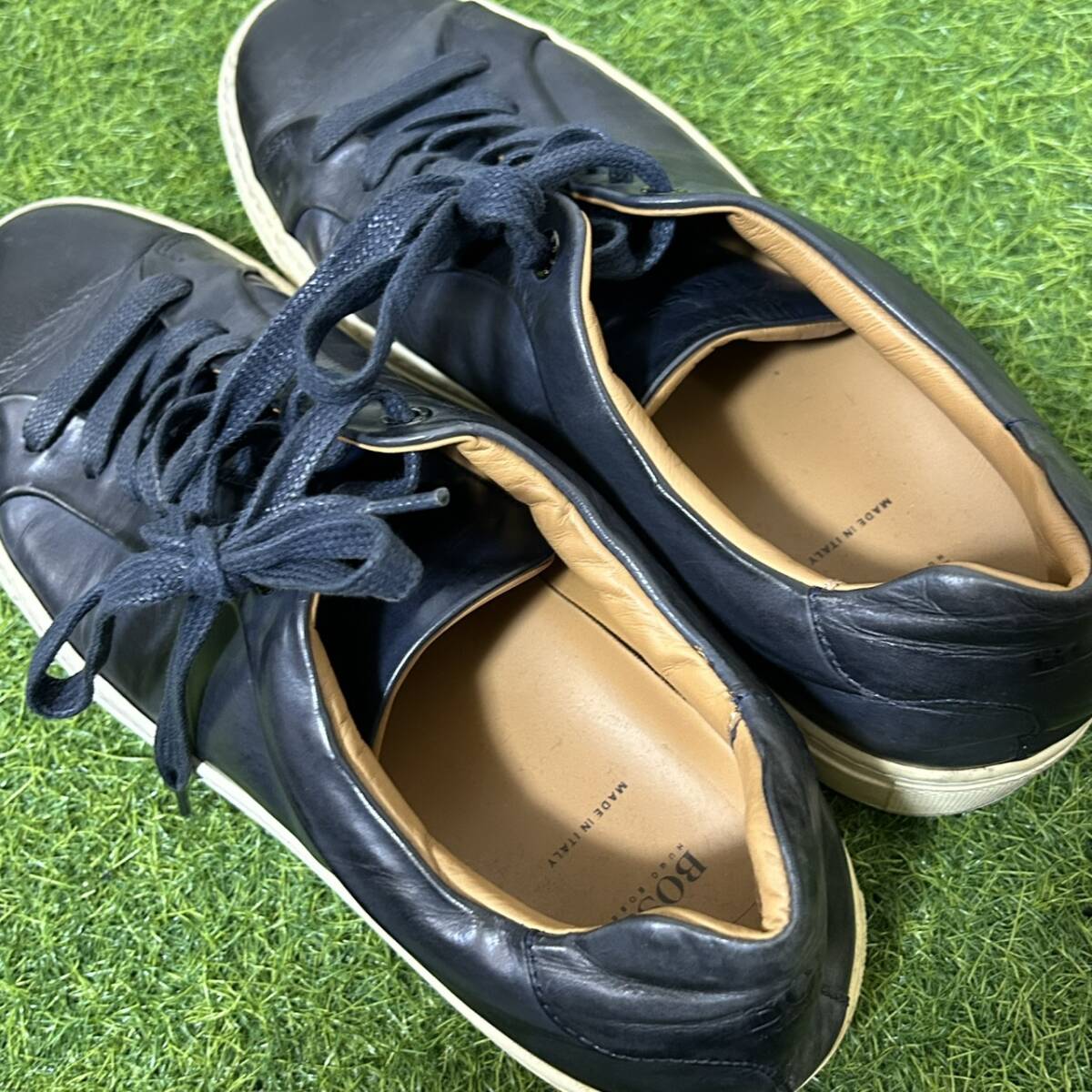 HUGO BOSS ローカットスニーカー 27cm ヒューゴボス イタリア製 レザー デッキシューズ ネイビー メンズファッション ブランド 紳士靴
