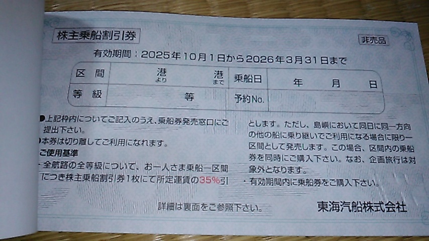 最新の乗船割引券4枚組です。新規ID入札禁止。神経質な方はお断りです。ミニレター(送料無料)で発送予定。