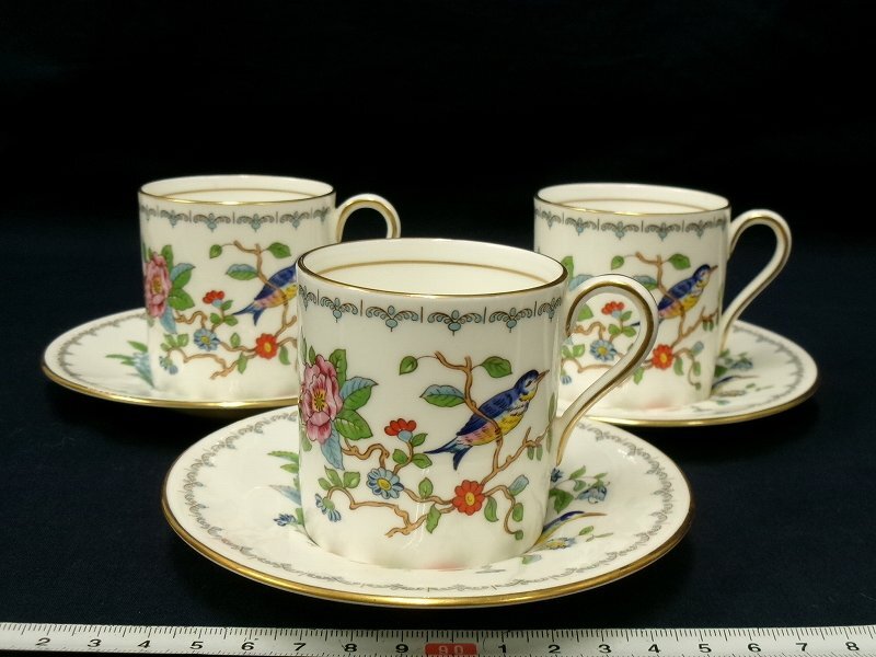 P6028 AYNSLEY エインズレイ PEMBROKE ペンブロック コーヒー カップ&ソーサー 3客 |