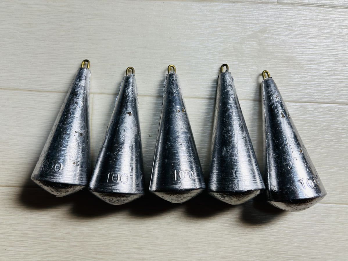 つり鐘オモリ100号5個です。この形状は水中に入った時に舞いにくいです。発送はゆうパケットポスト投函になります。発送は木曜日以外の出荷になります。
