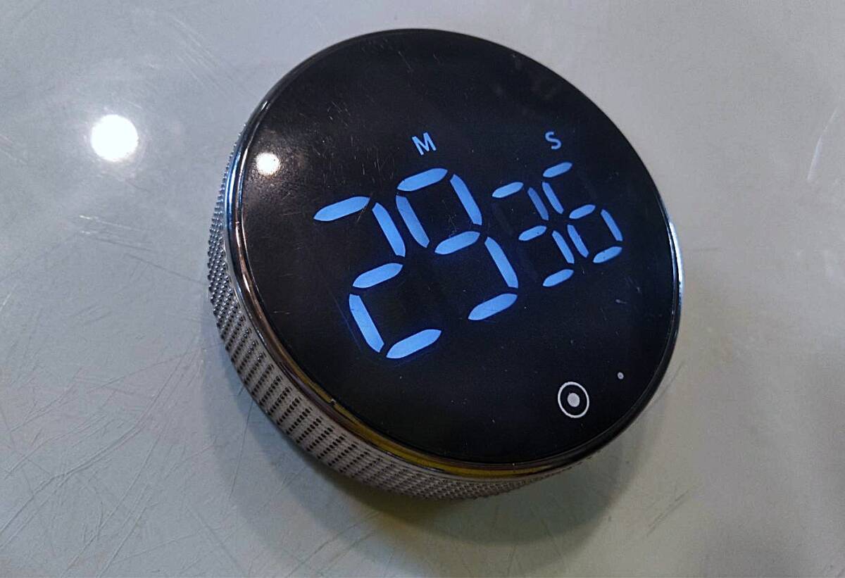 右回転で増加、左回転で減少、ワンタッチでスタート・ストップ。