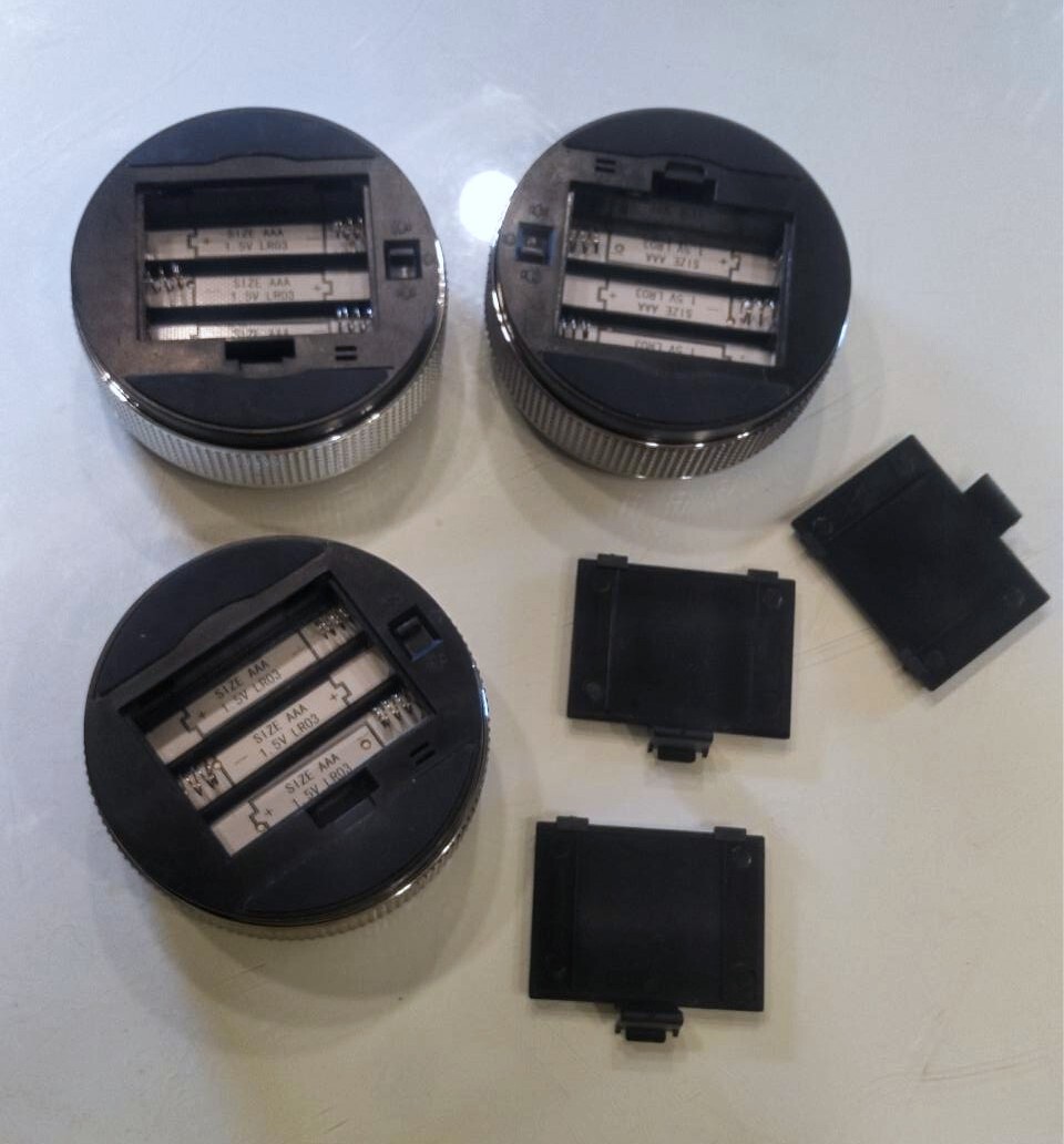 ■「仕様」サイズ:直径7.5cm、厚さ2.5cm、素材:ABS、カラー:ブラック、電池:単4電池x3(別売)