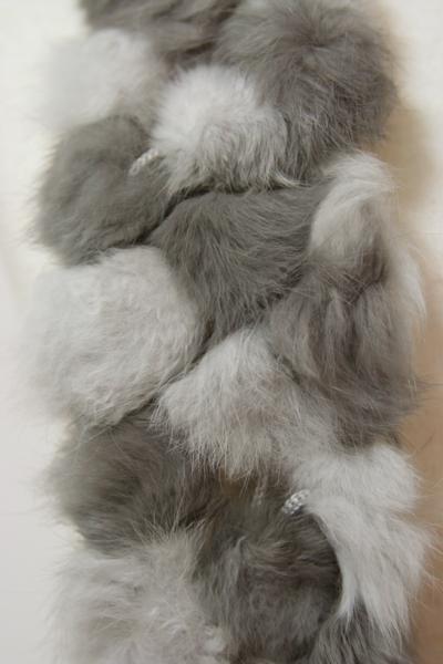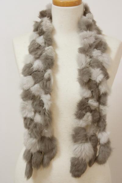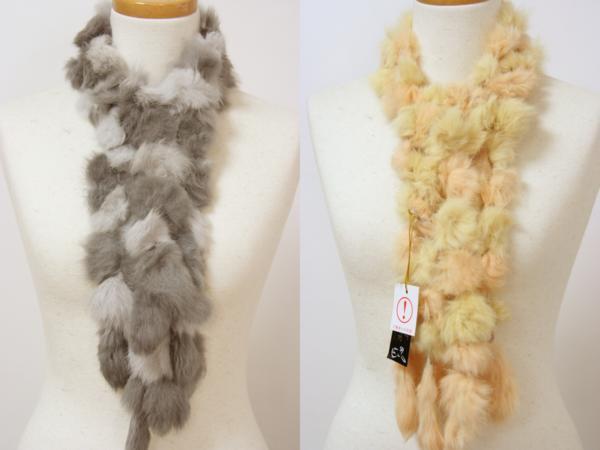 送料無料◆超お得◆2色組◆天然ラビットファー100%◆3連ボンボンMIX◆カラーマフラー(グレー&ベージュ)