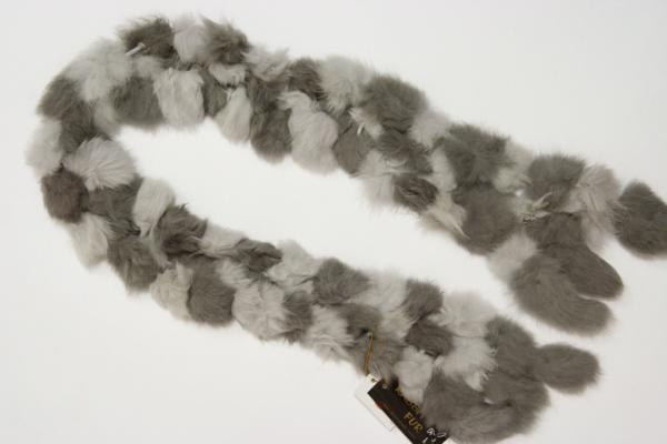 ・天然ラビットファーを3連のボンボンにしてつないだMIXカラーマフラーです。