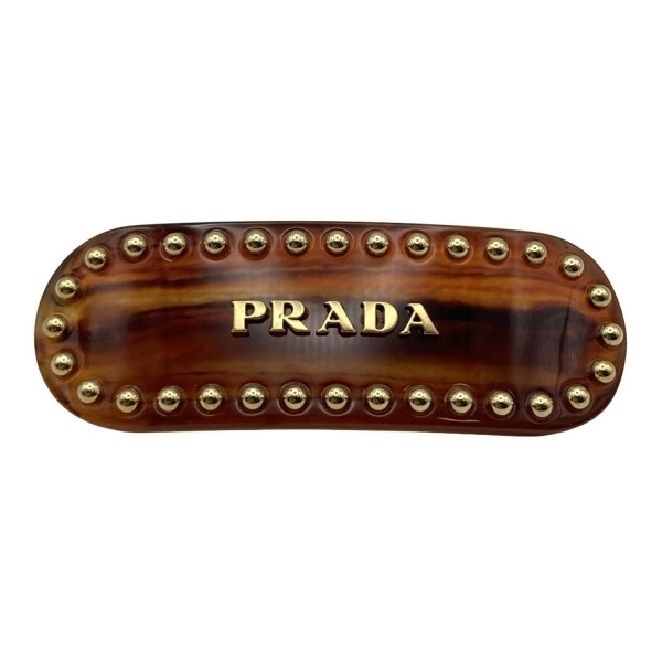 プラダ PRADA バレッタ - ブラウン×ゴールド スタッズ 美品 アクセサリー(他)
