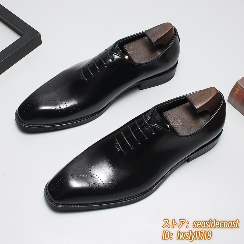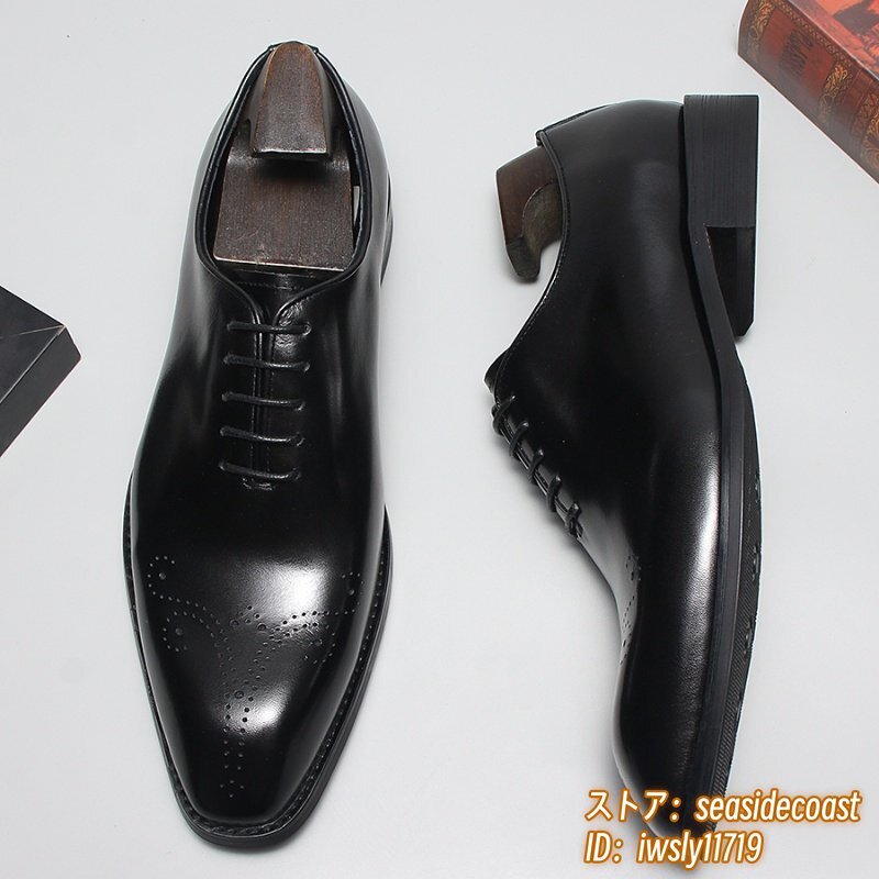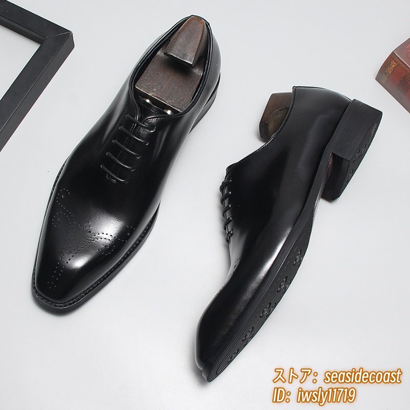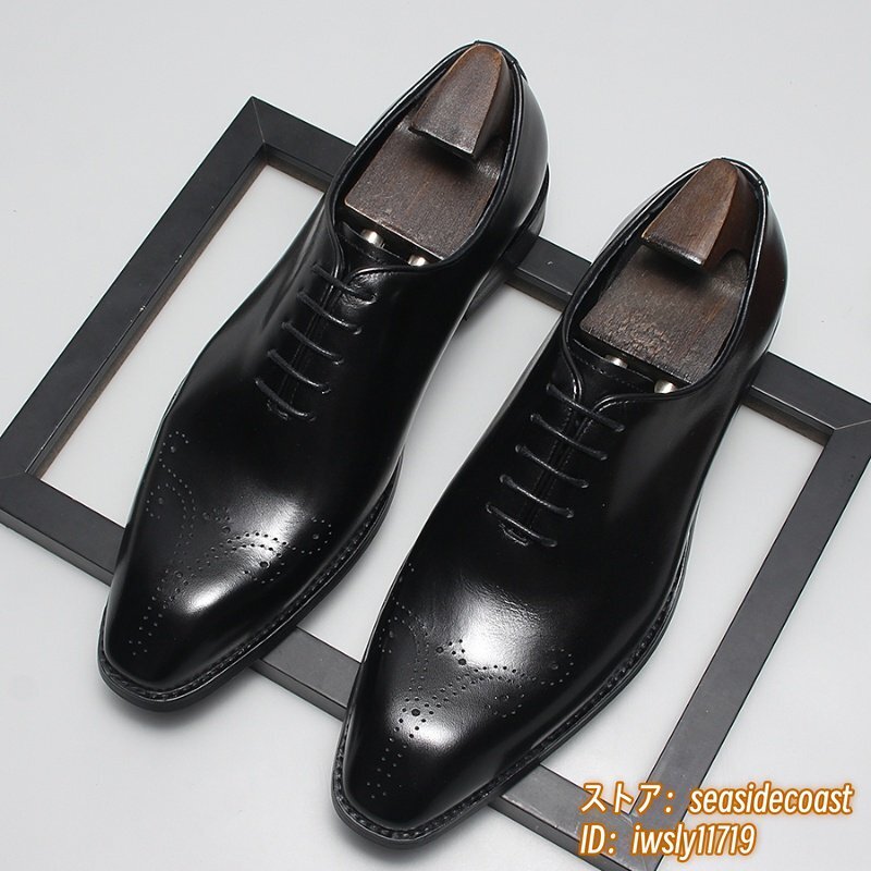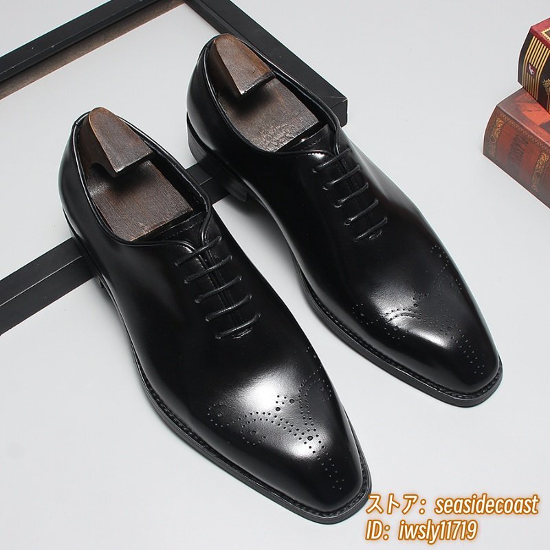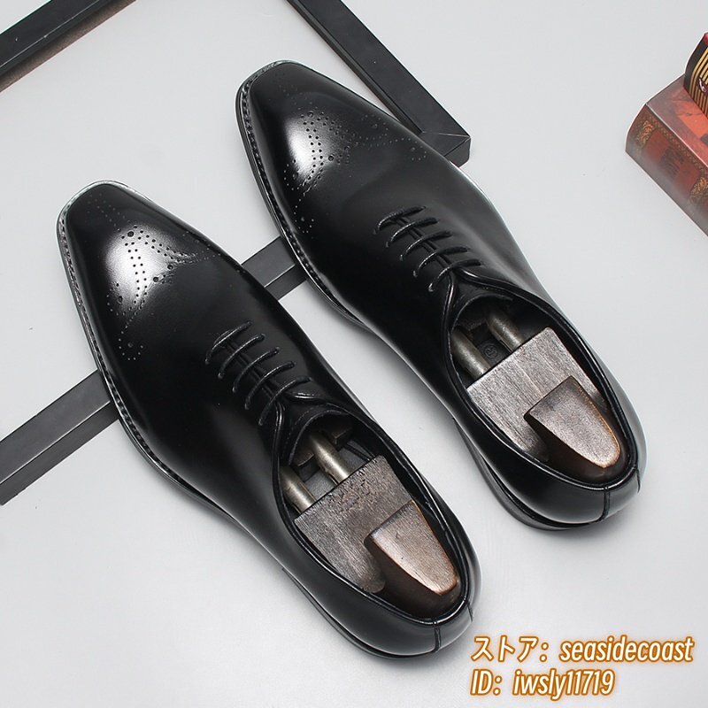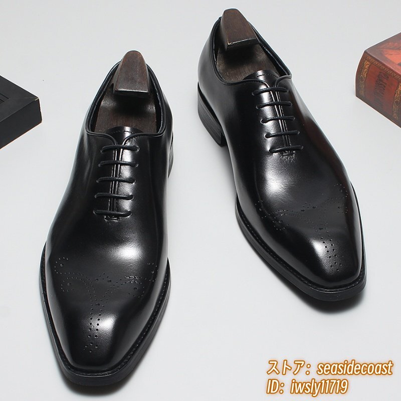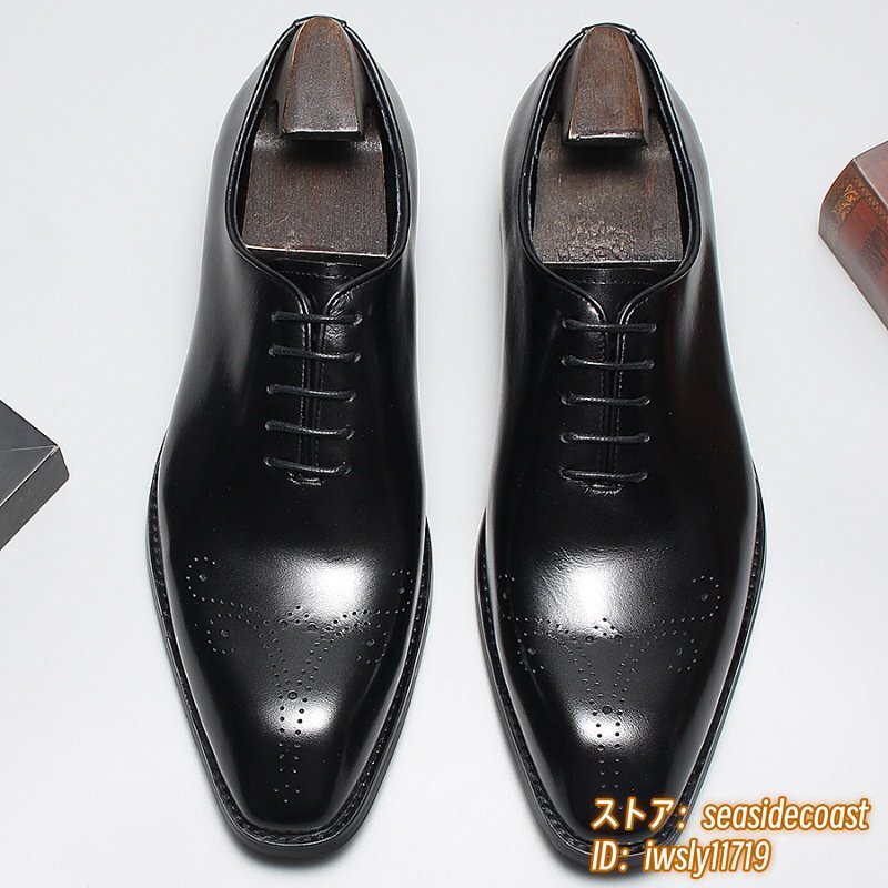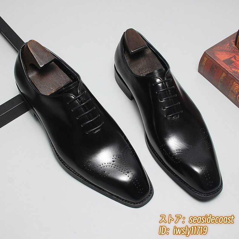 定価11万超★超希少 最高級牛革 ビジネスシューズ メンズ 本革 レザーシューズ 職人手作り 紳士靴 宴会 フォーマル 革靴 ブラック 24.5cm