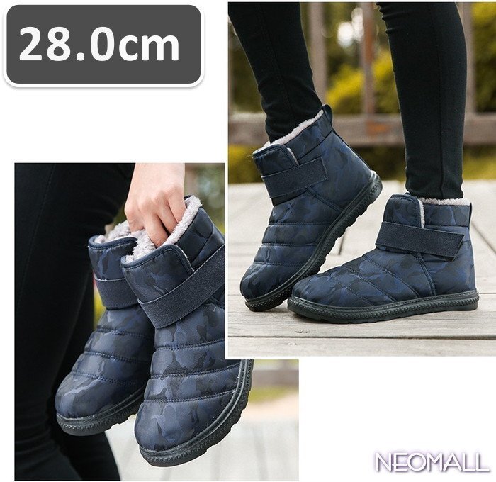 ユニセックス スノーシューズ 【870】 28.0cm 迷彩ネイビー ムートンブーツ スニーカー ウィンターブーツ 裏起毛 防水 防寒 防滑 冬用靴