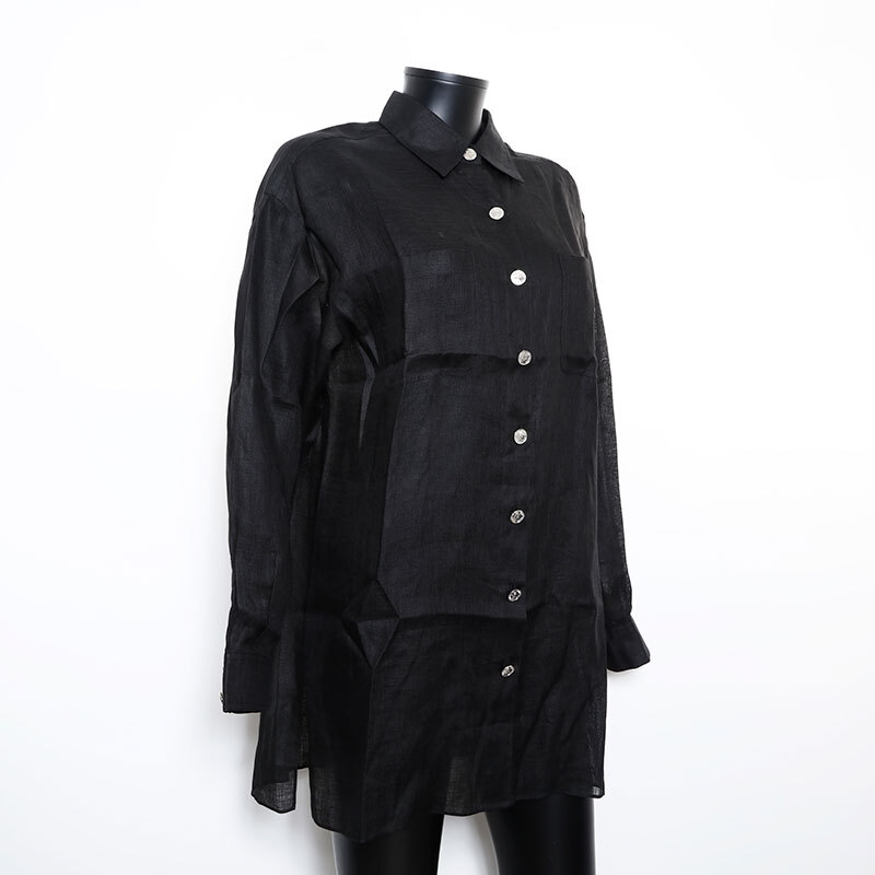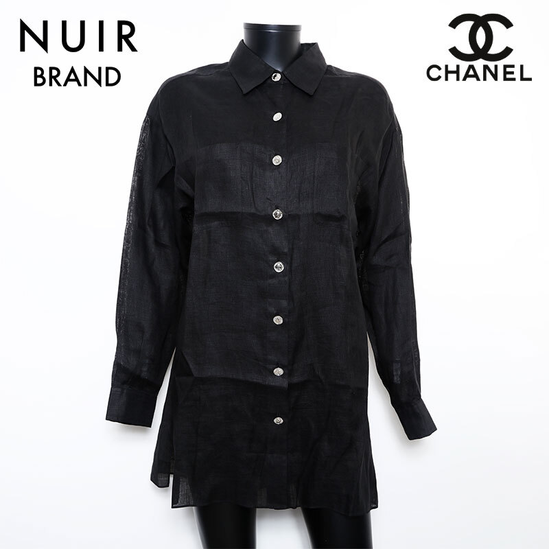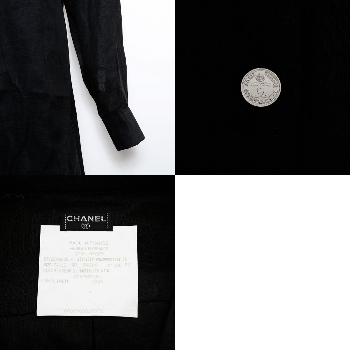極美品 CHANEL Size40 ココマークボタン シルバー リネン ワンピース ブラック
