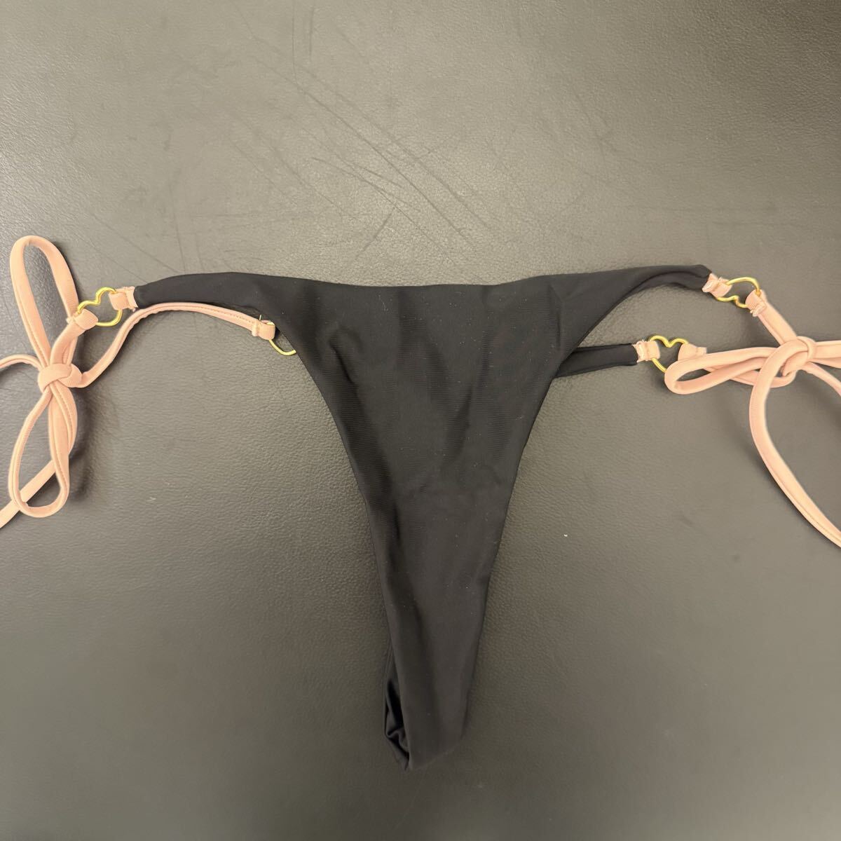 ハートリング ホルターネック Tパックビキニ 上下セット レディース水着 黒 ブラック