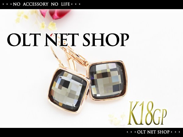 新品/ピアス/K18GP/クリア/クリスタル/18金/ピンクゴールド/レディース/両耳/リング/四角/スクエア/大ぶり/上品/シンプル/カラー