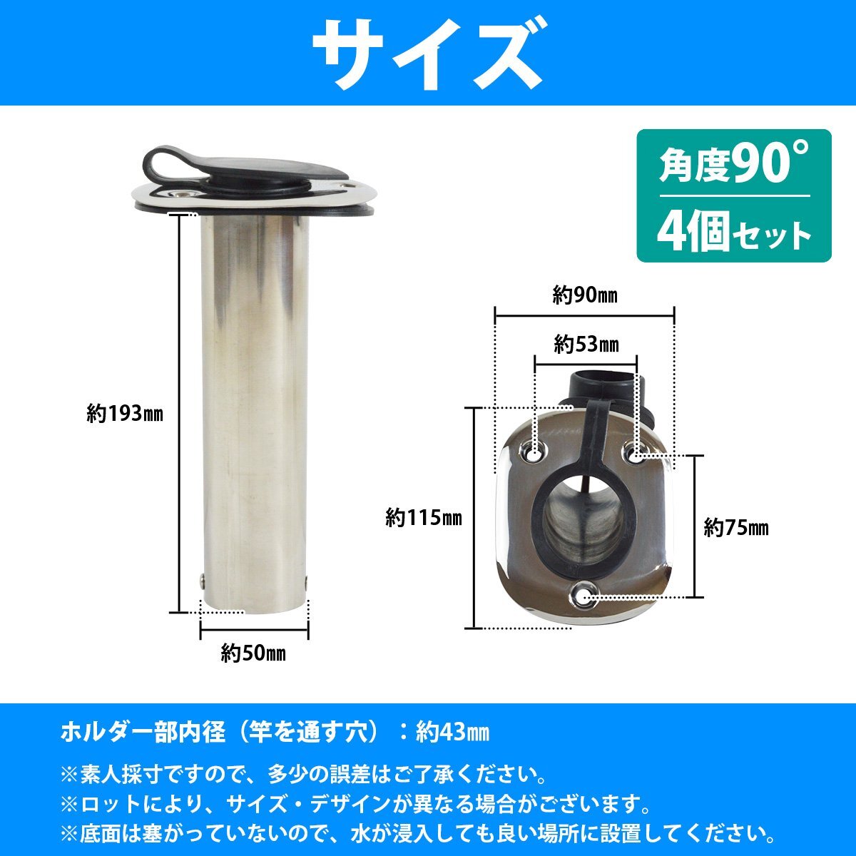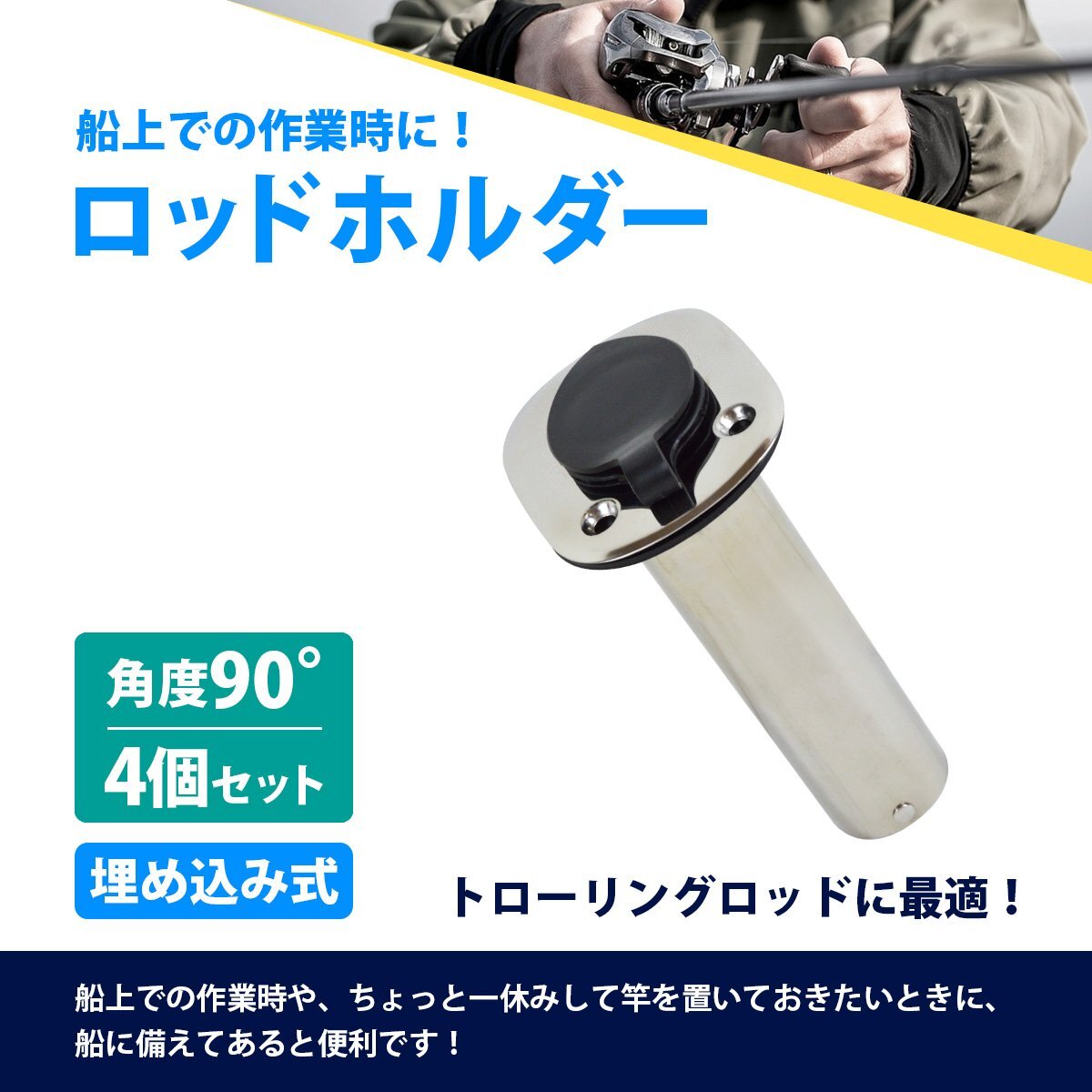 4個 セット 90度 埋め込み ステンレス製 ロッド ホルダー スタンド 釣り 竿 置き 受け 船 ボート 海 フィッシング 遊漁船
