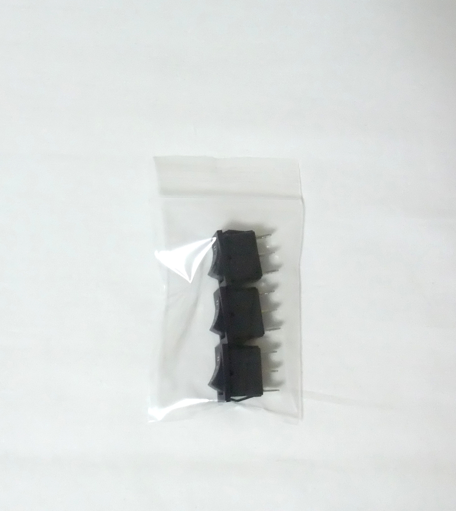 ON-OFF-ON角型ロッカースイッチ3個セット(21mm×15mm、黒色、新品)です。