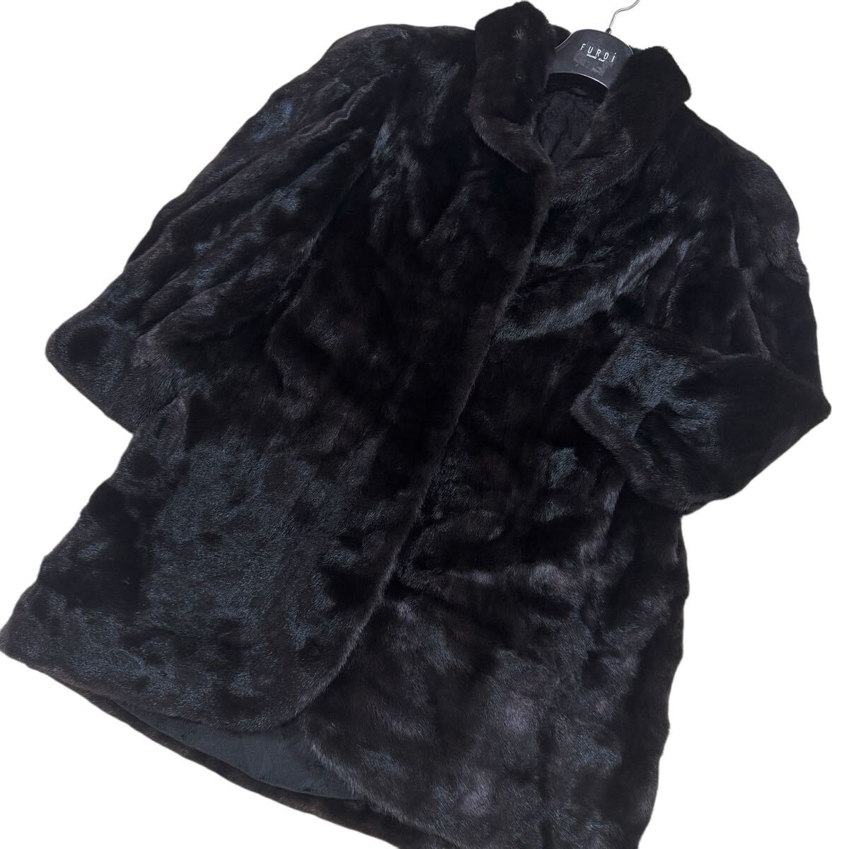 裾デザイン BLACKGLAMA ブラックグラマ ハーフコート ミンク MINK 貂 本毛皮 リアルファー レディース なめし柔らか◎艶◎毛並み◎ KA197